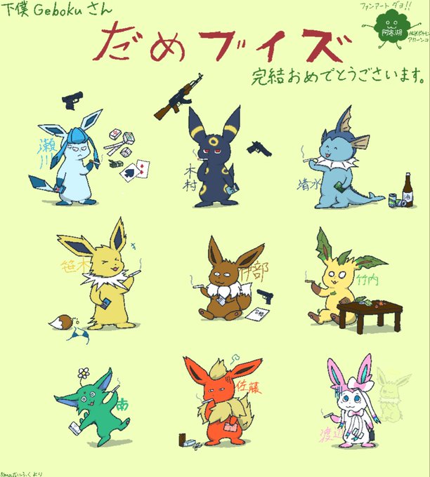 3 29 [ポケモン三次創作] ま、まただめブイズのファンアートを描きました 若き日の渡部とサンちゃんです CP大好きなのでこの2匹の絵をずっと描きたかった… 21/11/13 22:51