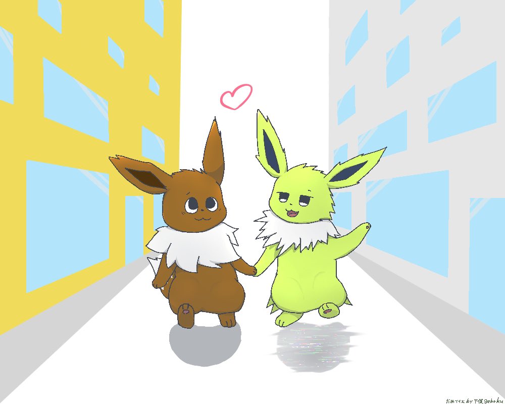 [ポケモン三次創作] ま、まただめブイズのファンアートを描きました 若き日の渡部とサンちゃんです CP大好きなのでこの2匹の絵をずっと描きたかった…