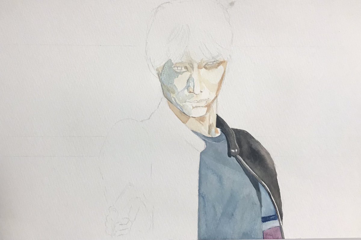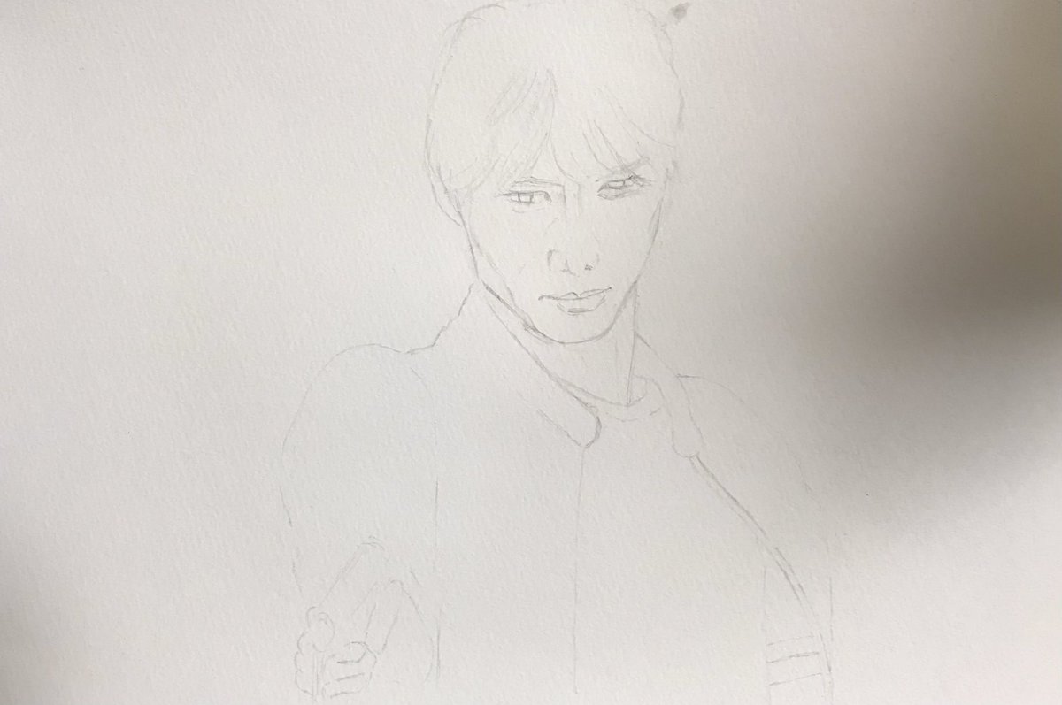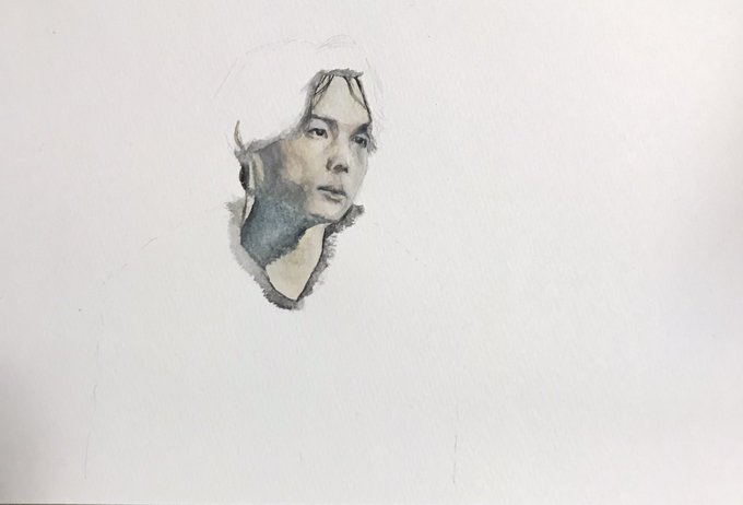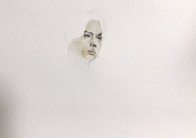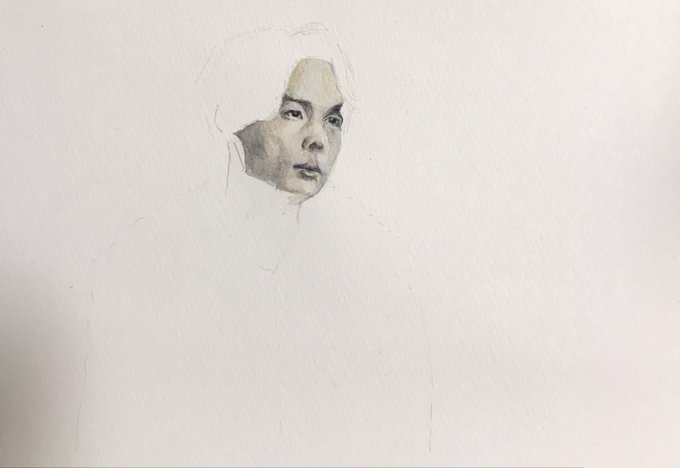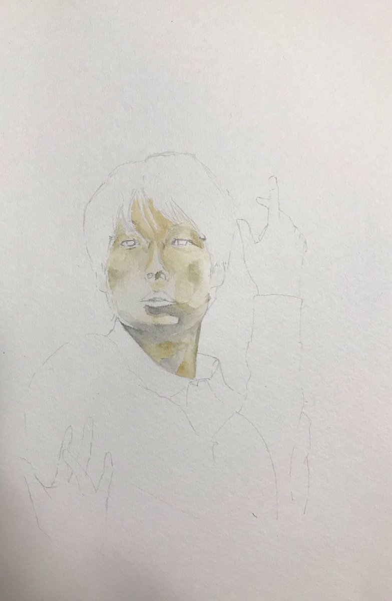 顔の感じから〜! なんとなくの雰囲気作りを🎨 #水彩画 #松村北斗