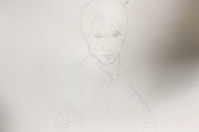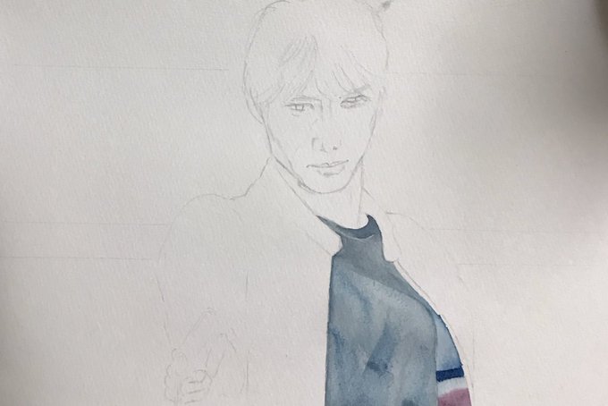 1 45 お花を〜! と、思ったのですが、色鉛筆画やら、鉛筆画が描き終わったらこの方の水彩画が何パターンも続いていきます😅 と、いう予告。 #水彩画 #松村北斗 22/01/10 19:21