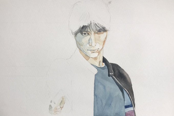冷たさを感じるような〜! 今までと違った感じの作風になりそうな #水彩画 #福士蒼汰