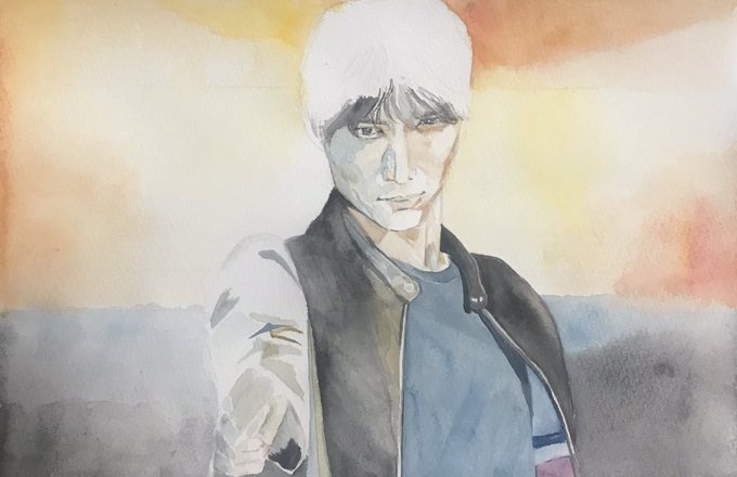 背景を〜! 新年から少し凄みのある絵になってますね🎨 #水彩画 #福士蒼汰