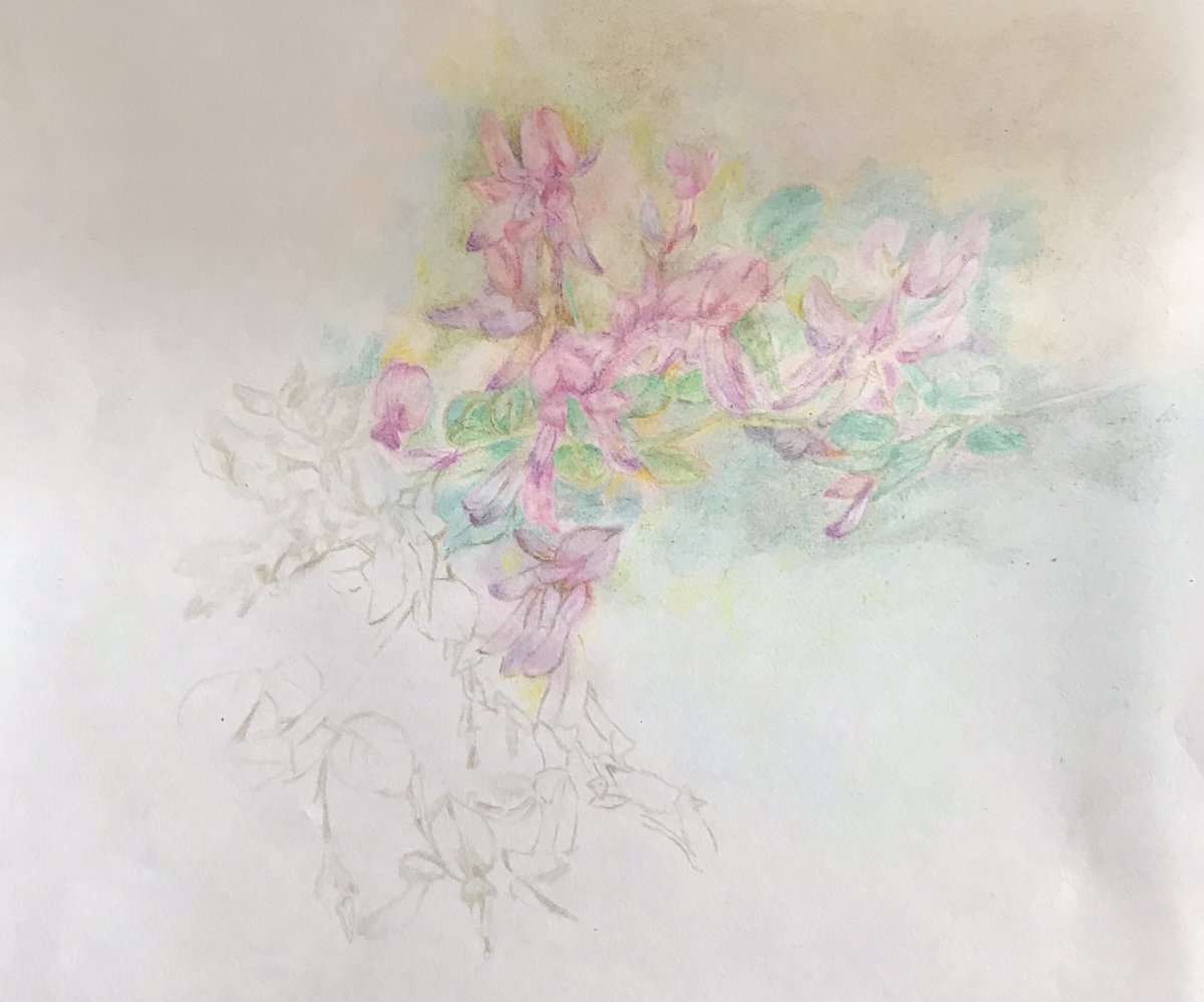 雰囲気作りを〜! やっぱり柔らかな感じにしていきたいですね〜✏️ #色鉛筆画