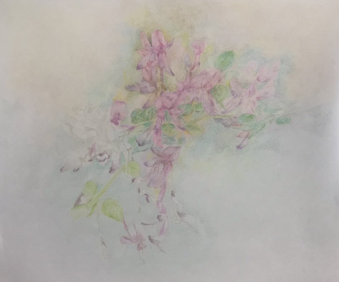 新しい絵です〜! 今回もお花を描きます🌸 #色鉛筆画