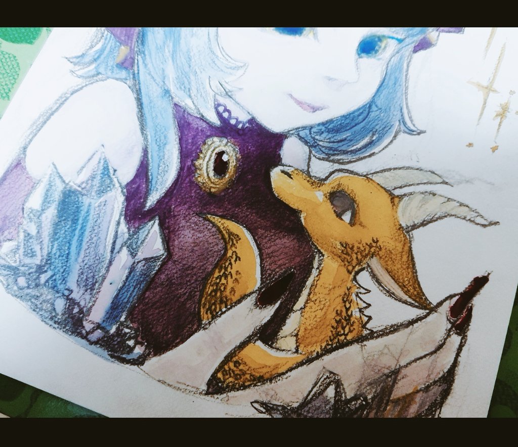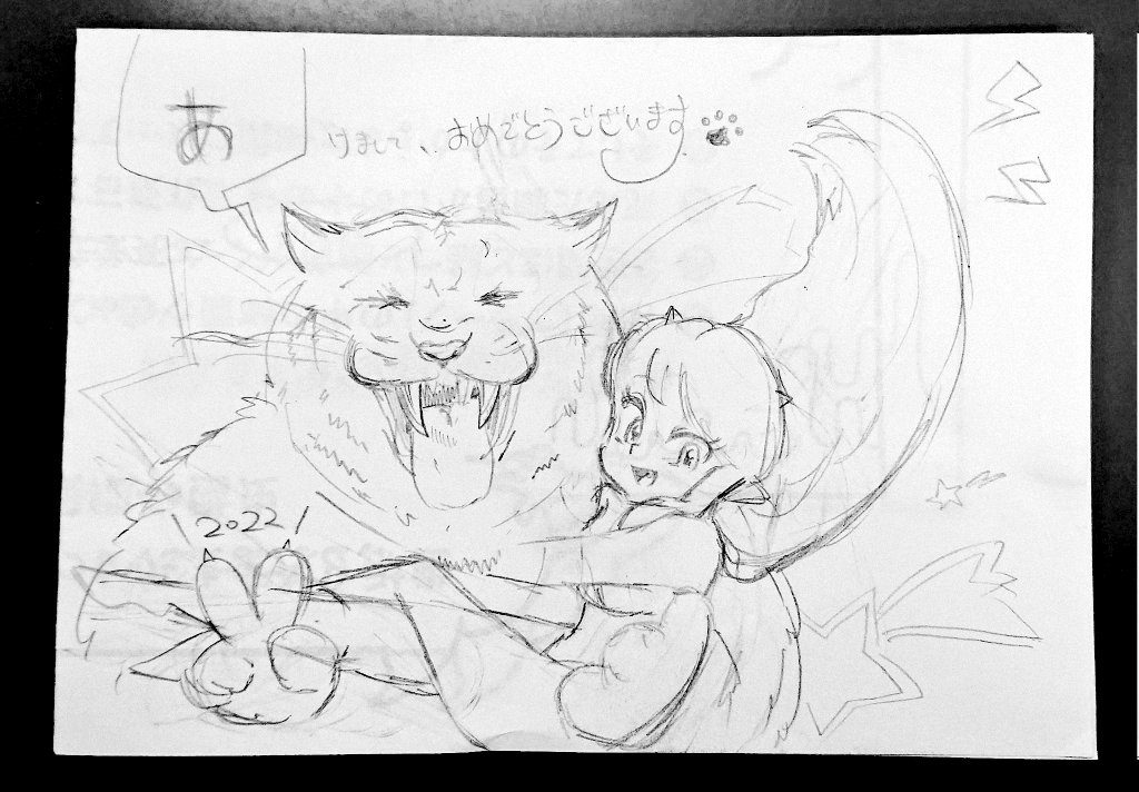 #このタグを見た人はラフ画とその完成絵を見せる #皆さんラフと完成絵を見せてください 年賀状で描いたやつですね。✧