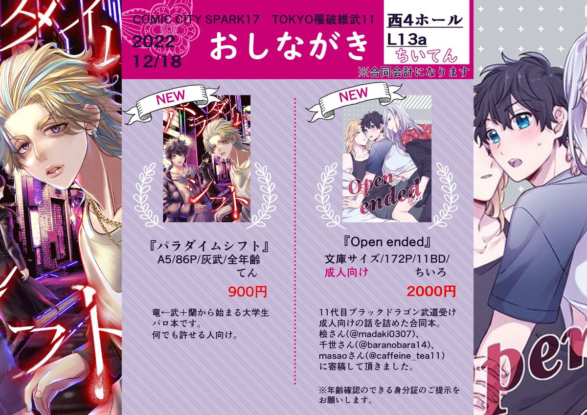 【サークル参加します!!】12月18日(東京)COMIC CITY SPARK 17内 TOKYO罹破維武 11| #イベントGO_赤ブー akaboo.jp/event/item/201… 昨日ギリギリサクカ差替ました🥺!! ちいろちゃんと合同サークル!灰武大学生パロ本予定です!