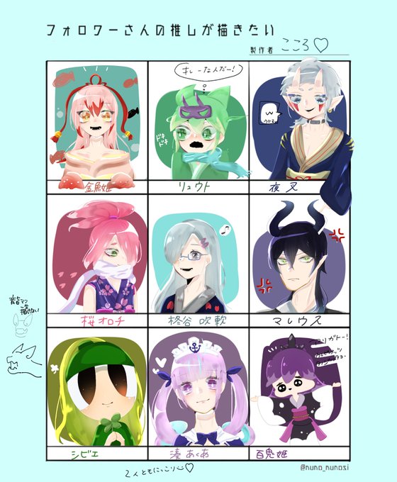 #リプをもらった番号の色を使って絵を描く パレットお借りしました🙏🏻 24.まどろみホイップ/寺刃ジンペイ 14.ホロホロマカロン/未空イナホ 06.スノーマジック/ふぶき姫 リクエストありがとうございました! 楽しかったです⸜❤︎⸝