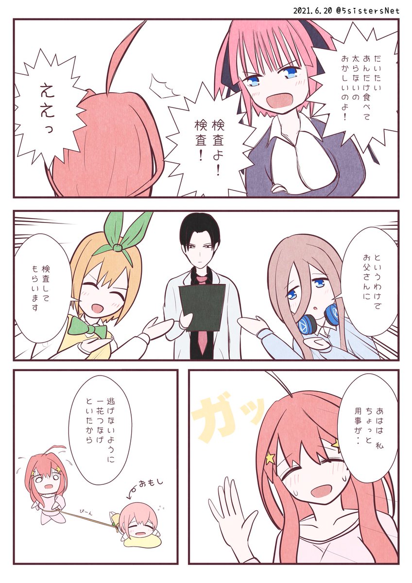 #五等分の花嫁 #今月描いた五等分の花嫁マンガ 今月はデフォルメ4コママンガ描いてました🤗 一花 二乃 三玖 四葉 五月ちゃんを必ず描こうとしてて リボンをすする五月ちゃんが誕生してました笑✨✨ 先月載せきれなかった四葉の日マンガもついでに🍀