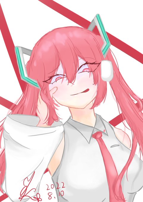 ちょい悪そうなミク描いてみました! #イラスト #初音ミク #イラスト好きな人と繋がりたい #絵柄好みって人にフォローされたい #絵描きさんと繋がりたい 裏ミクってどう表現したらと思い行き着いたのが色反転するなんだけど桜ミクっぽくなった_( :⁍ 」 )_