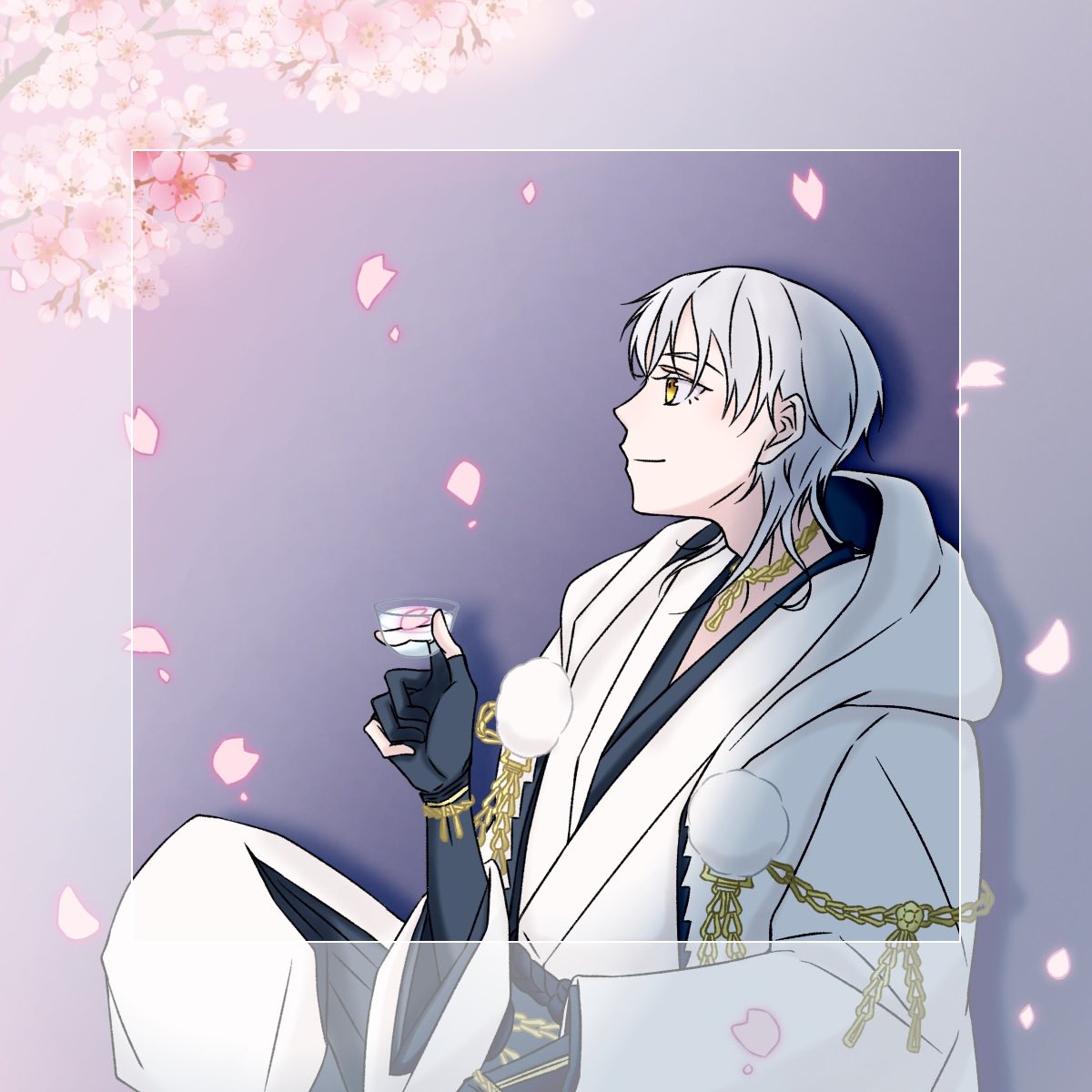 極実装記念日1周年…!! 弊本丸、実際帰ってきたのは18日だけれど、実装記念に描きたかったので🙏 おめでとう🌸 #鶴丸国永極実装1周年
