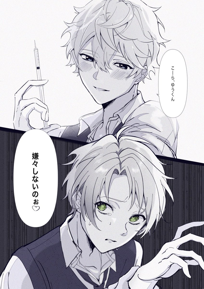 ⚠️タコピーの原罪パロ、ケガ 自分がどんな事をしても瀬名だけは絶対に自分側につく確固たる自信があるゆうくん このあと2人で仲良く死〇を埋めに行きます #あんスタファンアート #あんスタFA