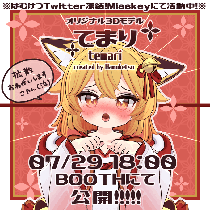 【拡散希望】はむけつさんの新作アバターてまりちゃんが公開されました!はむけつさんのTwitterアカウントが凍結により告知ができないため私の方からも代わりにツイート致します。 sisters.booth.pm またはむけつさん自身はmisskeyに活動の拠点を移しています。 misskey.io/@hamuketsu