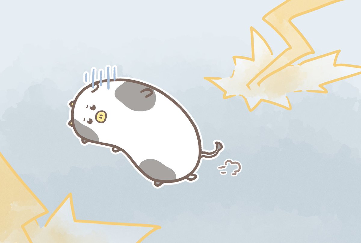 雷今日も降るのかな💦 背が高いから低姿勢でダッシュするウシさん🏃💨