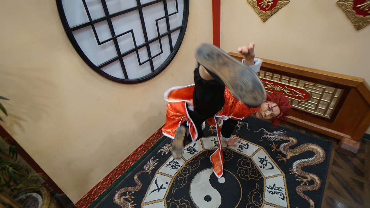 27 52 【コスプレ】fgo/李書文(ランサー) 蟷螂拳の脚技をイメージしてぴょいっと… 撮影 東風さん@ksk_johan_cos 21/06/06 10:11
