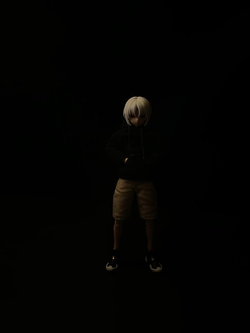 1 6 暗幕を背景に照明の位置とか調整したらシビィ感じに撮れた ハーパンのシワの感じが好き #メガミデバイス 22/11/23 00:43