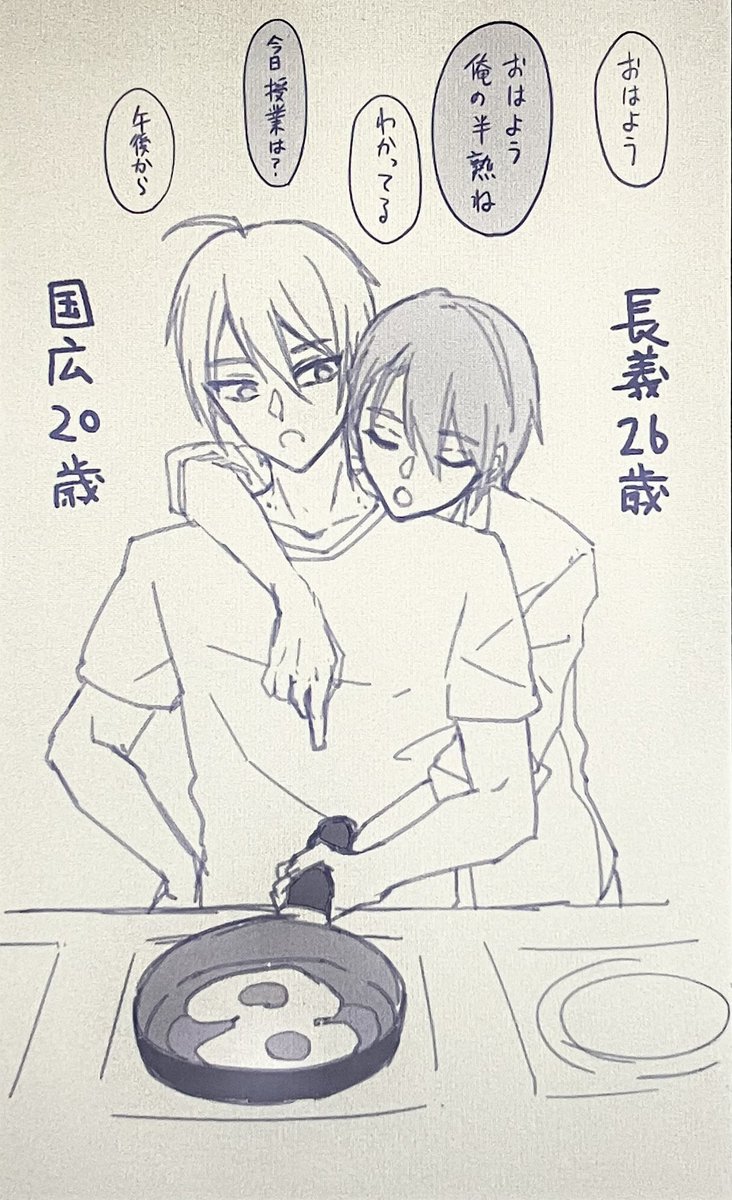 #RTされた数の年齢の攻めとふぁぼされた数の年齢の受けを絡ませる RT20 いいね26でくにちょぎ(現パロ同棲)です🍳 国広くんは大学生、長義くんは社会人 6歳差っていいですよね。せっかくなので途中経過も