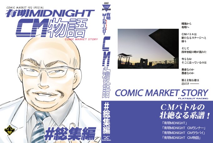 遥か空から見てるか オヤジ アンタが入院してた 25年の間 オレはずっと コミケに通ってたヨ---- 「有明MIDNIGHT CM物語#総集編」 C102 初日(土)東6-ス-25b 「FLAT&SLIT RACING」