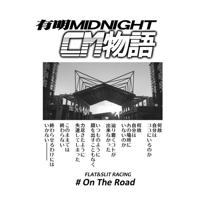 晴海から 有明へ CMバトルは 新たなるステージへと 移り そして 四半世紀の時が流れた 今もなお そこに立っているのは 勇者なのか 愚者なのか 答えを知る者は 己だけ -------- 「有明MIDNIGHT CM物語#総集編」 入稿完了 C102 初日(土)東6-ス-25b 「FLAT&SLIT RACING」