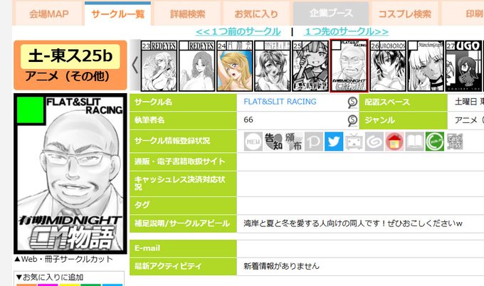 33 69 ようやく当落確認できました! 夏もよろしくお願いします!w 夏コミC102 初日(土)東6-ス-25b 「FLAT&SLIT RACING」 有明MIDNIGHT CM物語 総集編 23/06/10 18:04