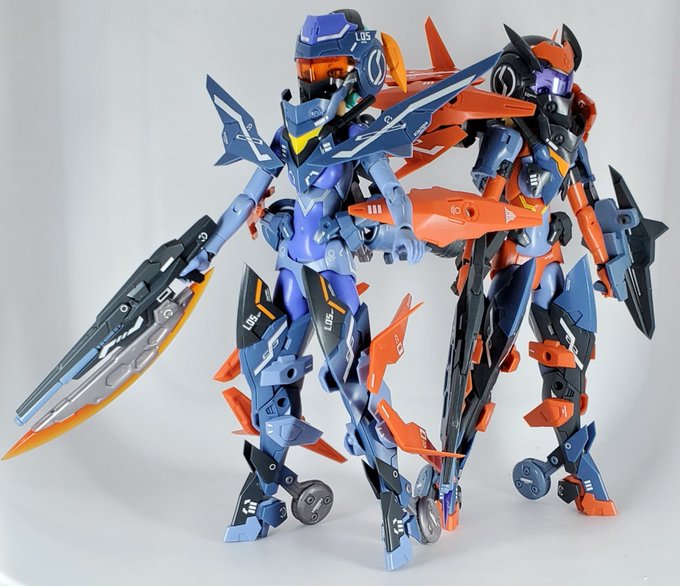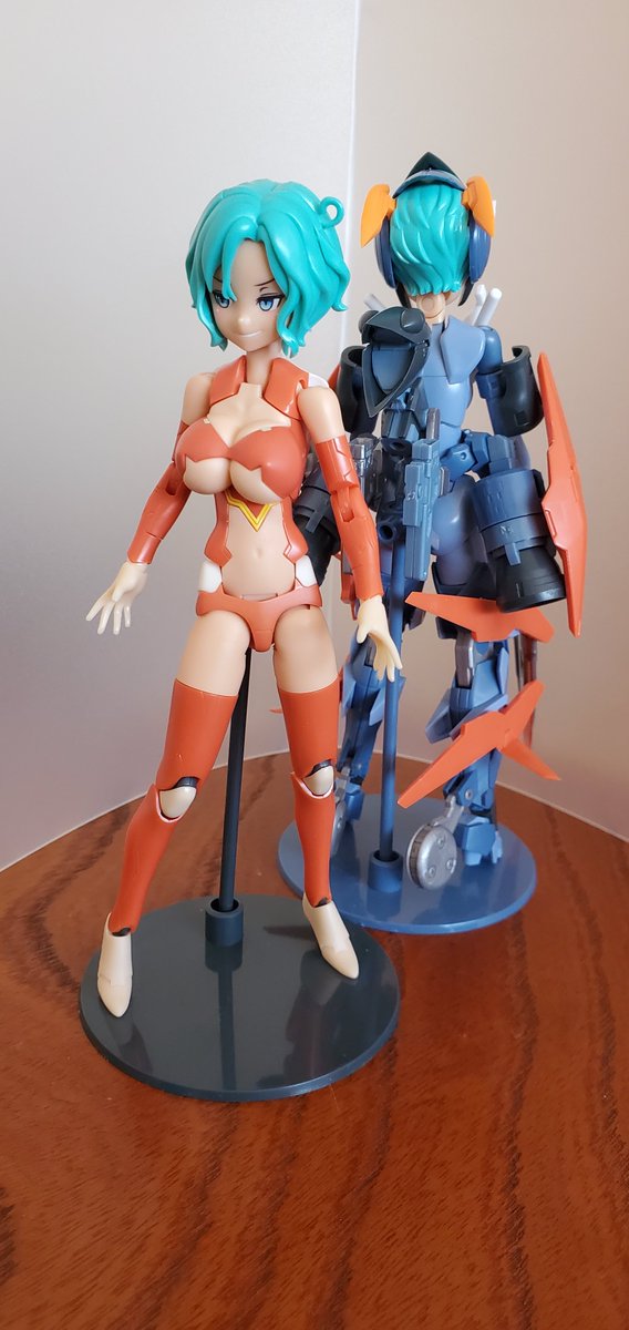 ほーちゃん、ろーちゃん、素体完成です。 クールビューティーなほーちゃんと、スポーティーツンデレなろーちゃん、ってとこでしょうか。 あまりパーツで作ったろーちゃんのシューズがなかなか良い感じ。 #メガミデバイス #SOLホーネット #SOLロードランナー