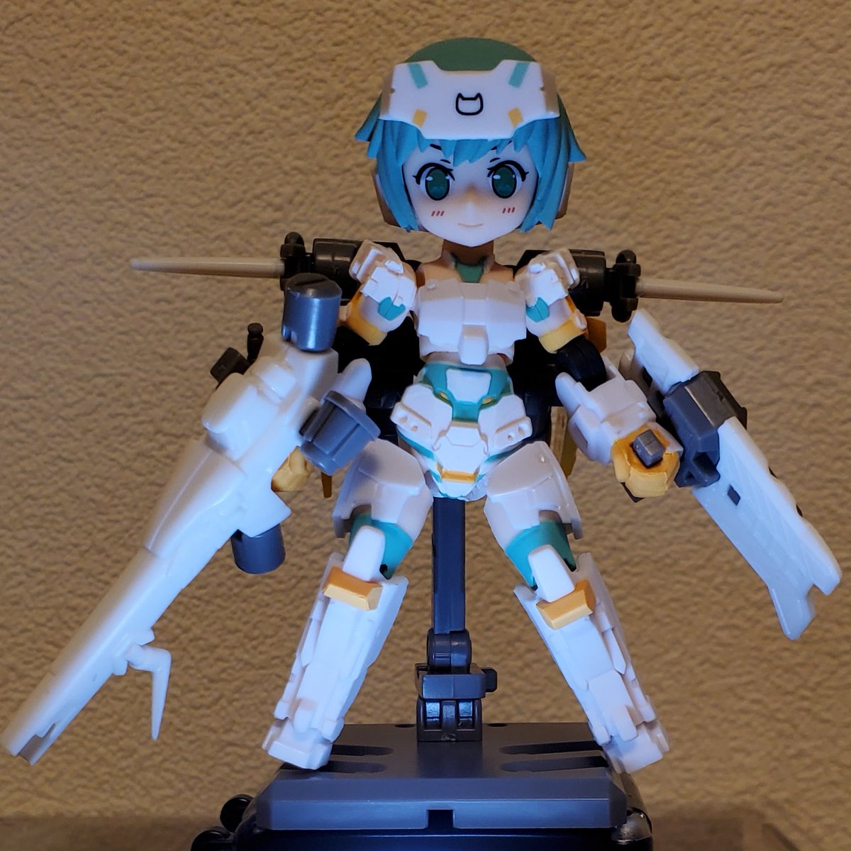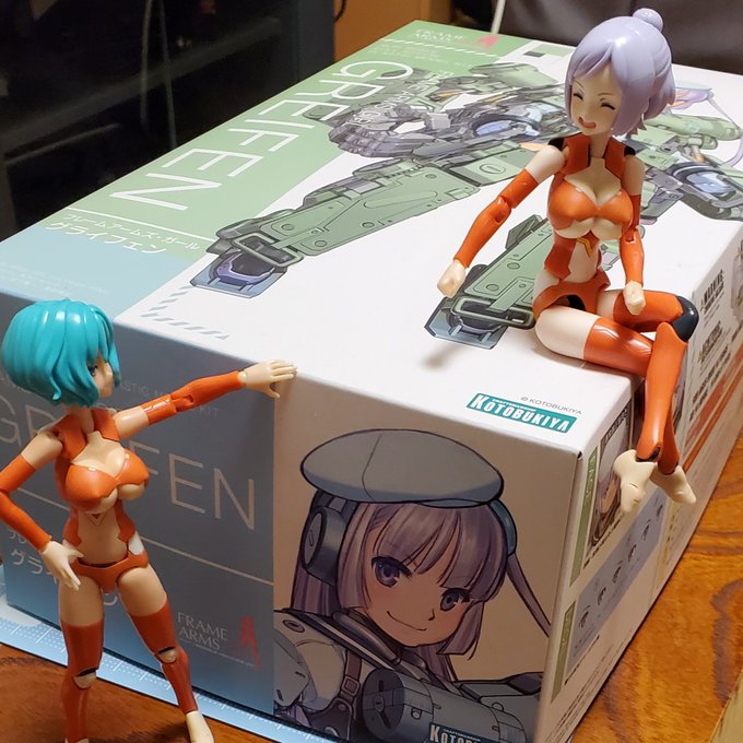 ほーちゃん:次はこの子だって。 ろーちゃん:FAガールって、うち少ないんじゃ? ほ:迅雷ちゃんに続いて二人目じゃない? ろ:デカイだけならアタシの敵じゃないね と言う訳で、次はフォロワーさんよりお譲りいただいたグライフェンいきます! #メガミデバイス #フレームアームズガール