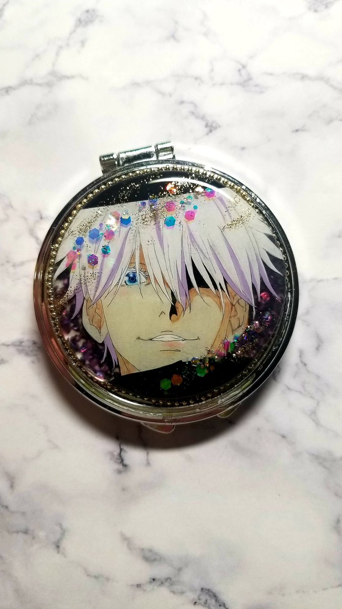 リクエストされた、五条悟のプラバンをミラーにしてみた。少し薄暗いところで見ると浮き上がって見える感じがとても好き。 #プラバン #色鉛筆 #呪術廻戦 #五条悟