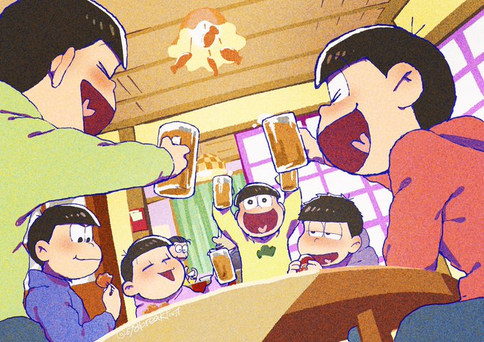誕生日にファンのためにツイッターやってくれた六つ子ちゃん偉すぎるので存分に飲んで騒いで欲しい🎉 #松野家6つ子生誕祭2022 #5月24日はおそ松さん6つ子の誕生日 #おそ松さん生誕祭