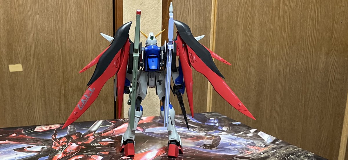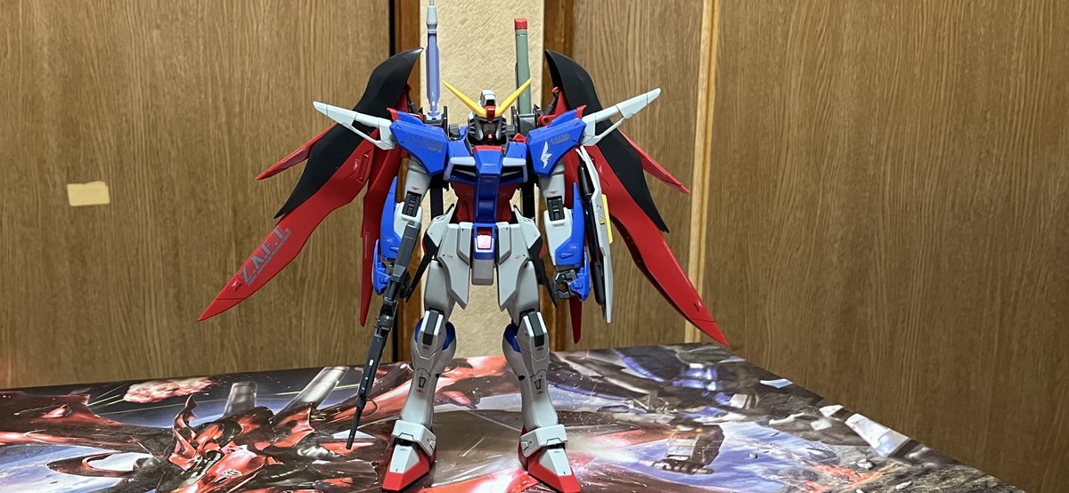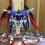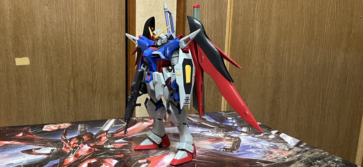 今日のガンプラ( ̄∇ ̄) 今回はMGのデスティニーガンダムを (´∀`) 背負い物がデカくて立てないかな〜と思ってたけど普通に自立出来たし(*´꒳`*) #ガンダム好きと繋がりたい #ガンプラ好きと繋がりたい #ガンプラの画像貼るとRTされると聞いて