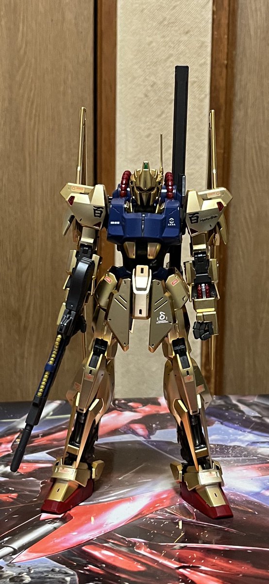 今日のガンプラ作り( ̄∇ ̄) MG百式 Ver.2.0完成〜(*´∇`*) ツヤ消しの金メッキとはいえ光の反射はキツかったε-(´∀`; ) という事で…… 最後はVer.2.0のMk-IIとZと3体並べて (*゚▽゚*) #ガンダム好きと繋がりたい #ガンプラ好きと繋がりたい #ガンプラの画像貼るとRTされると聞いて