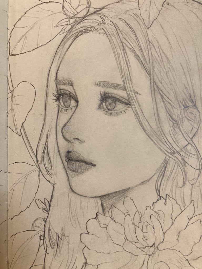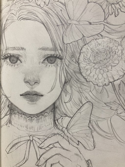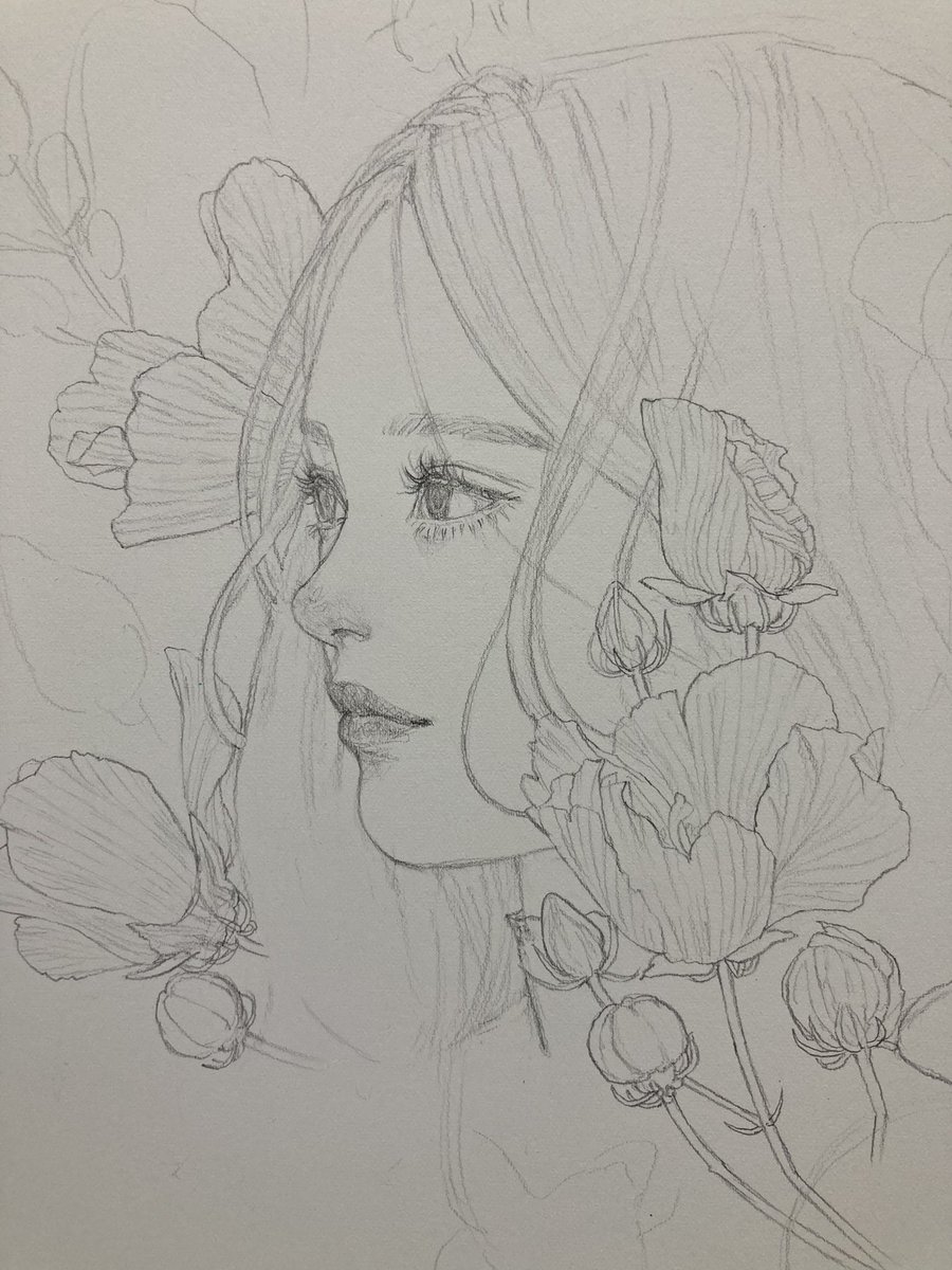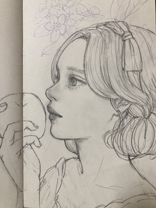 次回の絵のアイディアスケッチと最近の植物スケッチです😊クチナシは何度描いても楽しいなぁ😌 #イラスト #ド直球に言いますがフォローしてください #絵柄好みって人にフォローされたい #絵描きさんと繋がりたい