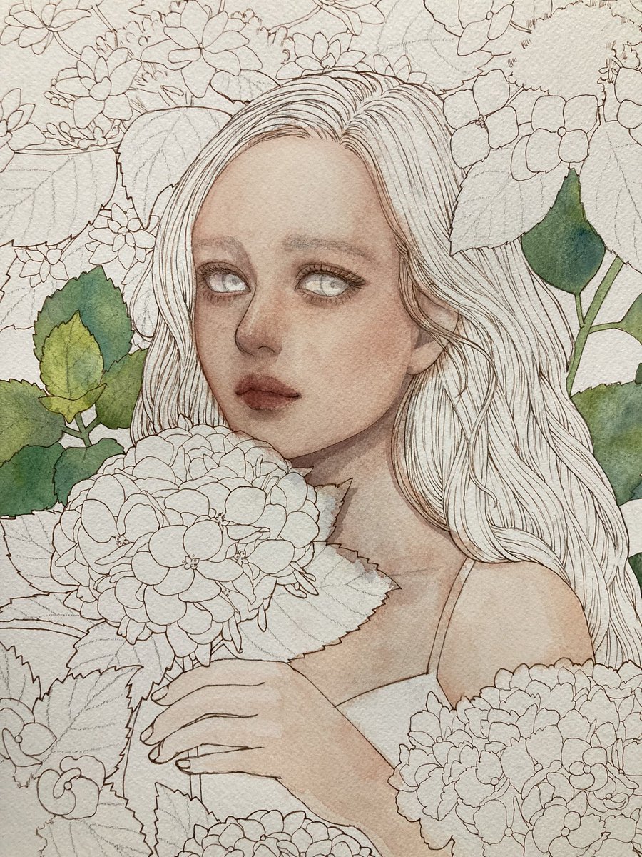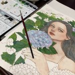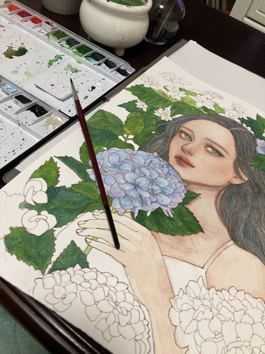 季節のお花を描きたいのでずが筆が追いつかなくて大体枯れた頃に描いています😌 #紫陽花 #イラスト #ド直球に言いますがフォローしてください #絵柄好みって人にフォローされたい #絵描きさんと繋がりたい