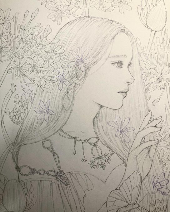 アガパンサス描こうと思ってからしばらく経ちますが、ようやく水彩紙に線画が描けました☺️ 塗るの楽しみだなー😊 こちらは次回の塗り絵セットに入る予定です😌 #イラスト #線画 #ド直球に言いますがフォローしてください #絵柄好みって人にフォローされたい