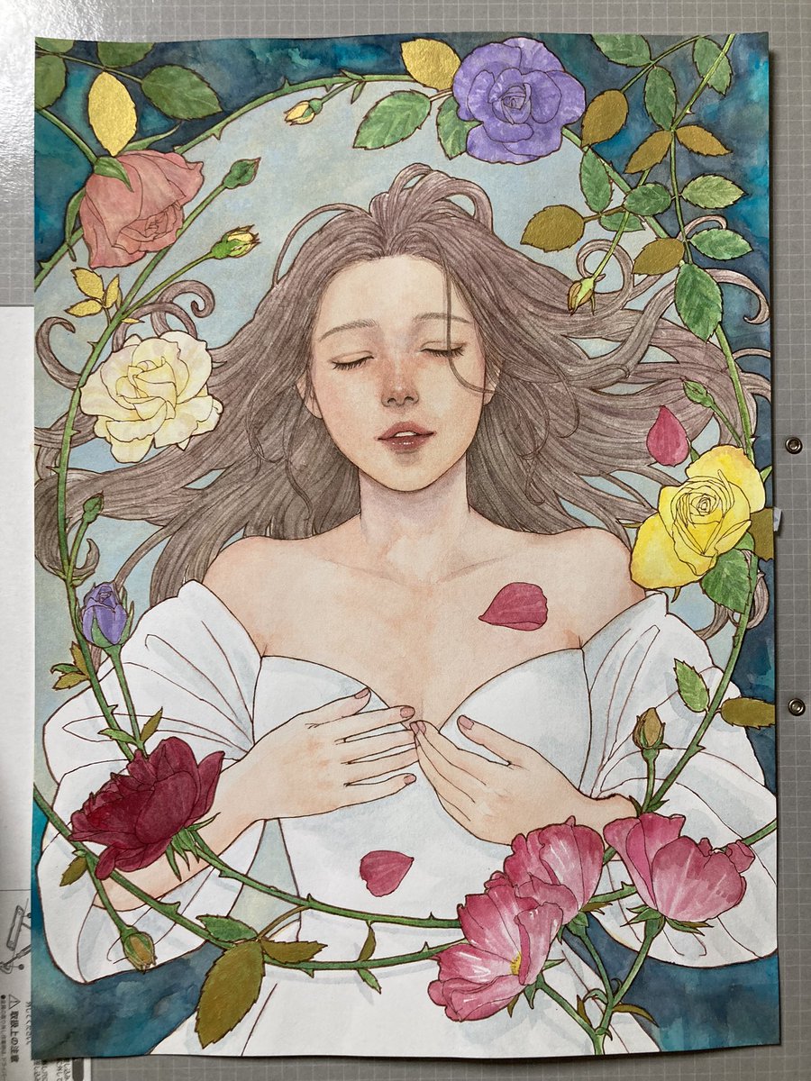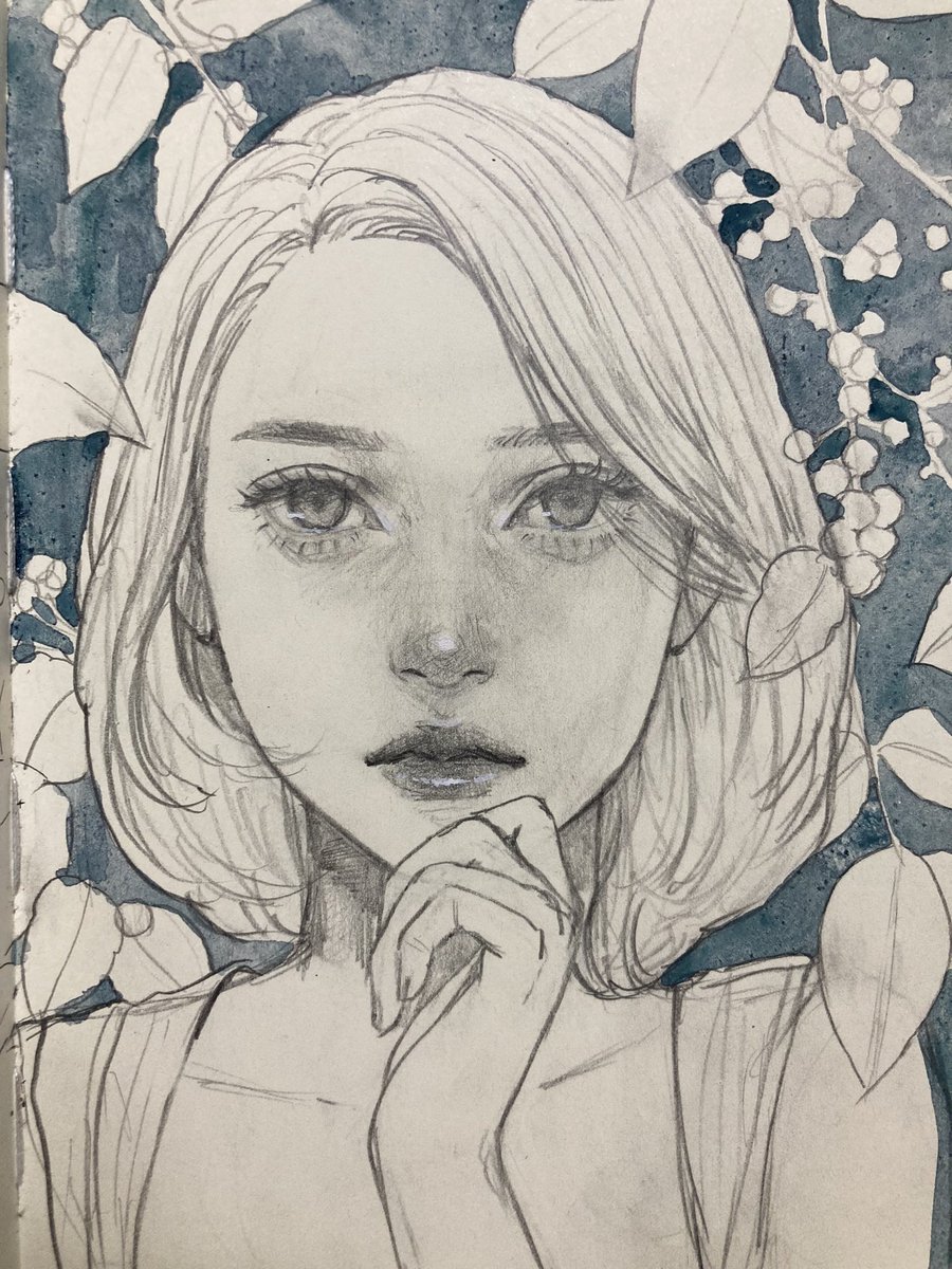 ファブリアーノの荒目に描いています😊 SMサイズは気楽に描けるのでお気に入りです😌 極細目の方が描きやすいですが荒目の仕上がりも良いなぁ☺️ #イラスト #ド直球に言いますがフォローしてください #絵柄好みって人にフォローされたい #透明水彩