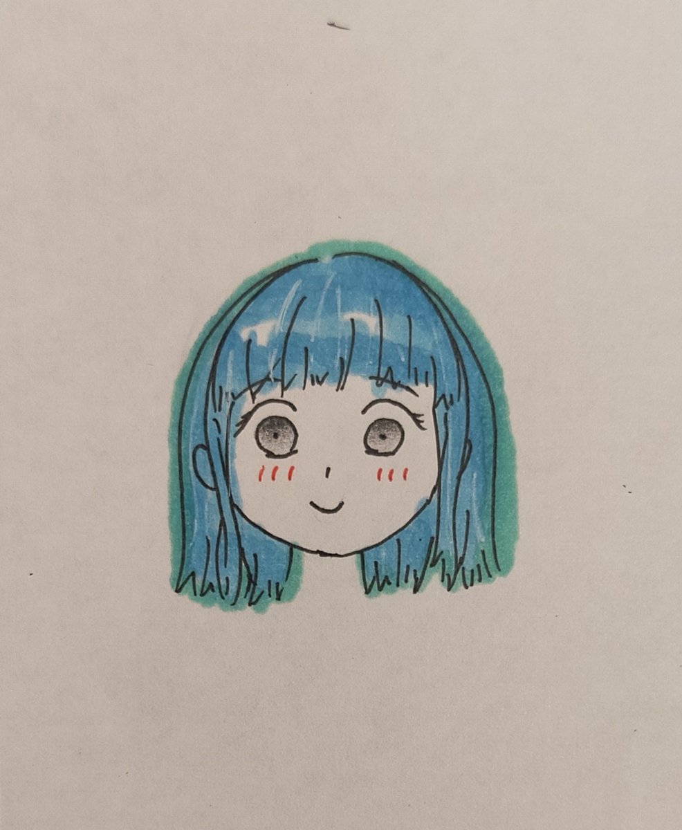 day8 透明感の意識 難しいです。 でも、いつもに比べて髪の毛がうまく行きましたヽ(=´▽`=)ノ そろそろ裏紙に描くのやめます…😭 #イラスト #イラスト好きな人と繋がりたい #絵描きさんと繫がりたい #青 #雨 #コピック #練習 #透明感