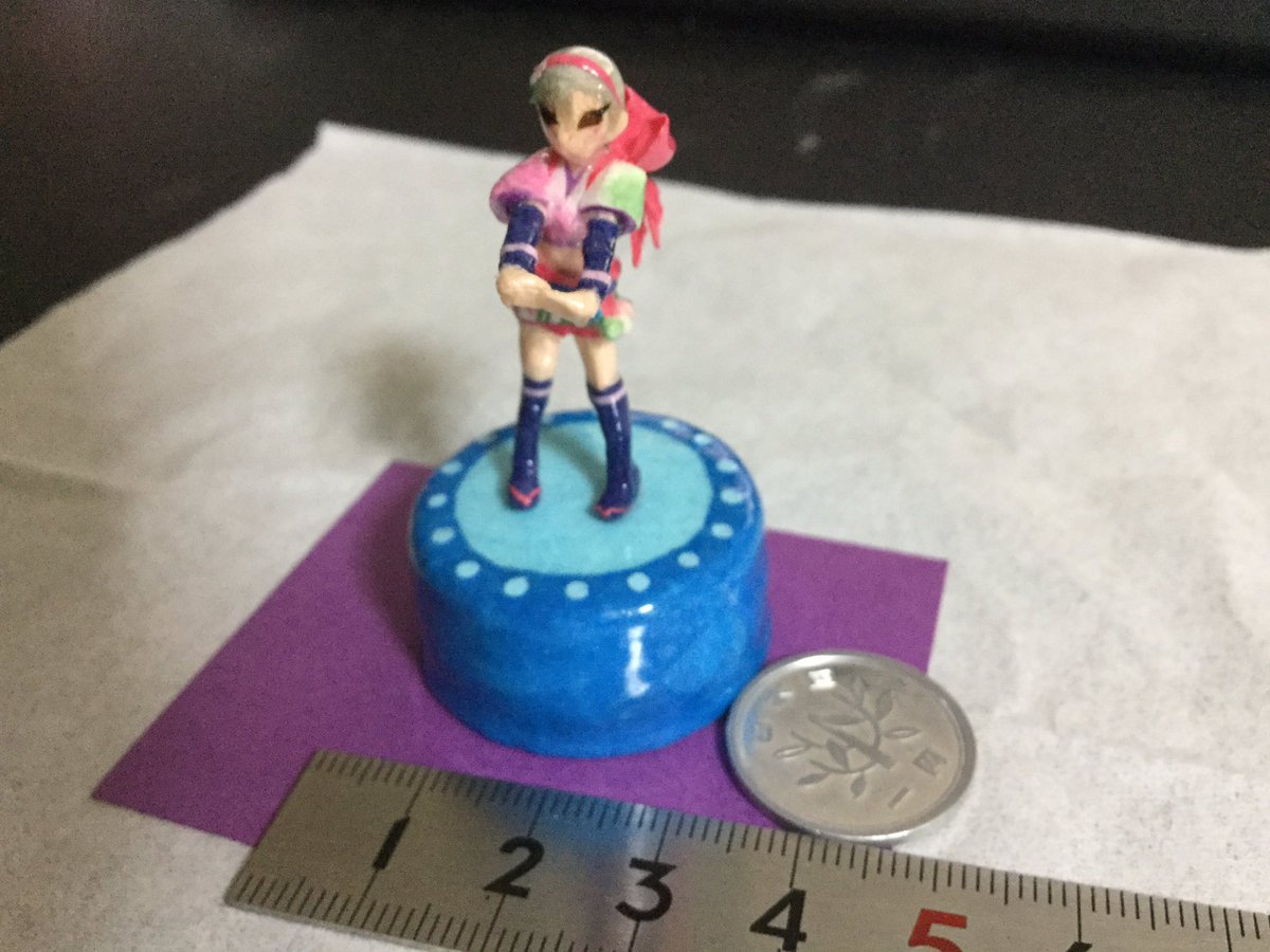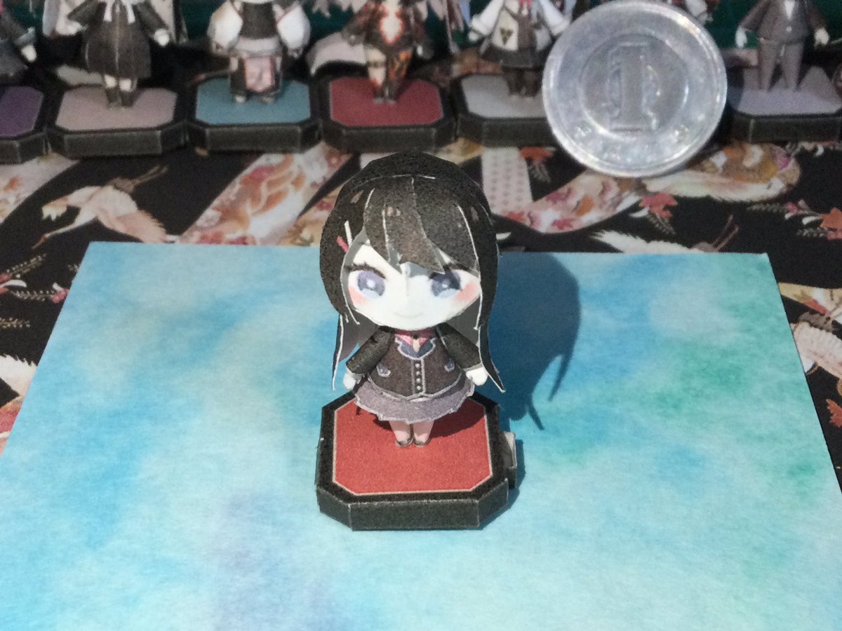 シンデレラガールズから塩見周子ちゃん完成!! ( ゚∀ ゚)ハッ!3cmだ!! 確か高さは気にしなくて良いと見た気がするから達成かな!? #ペーパークラフト #papercraft #3cmの世界
