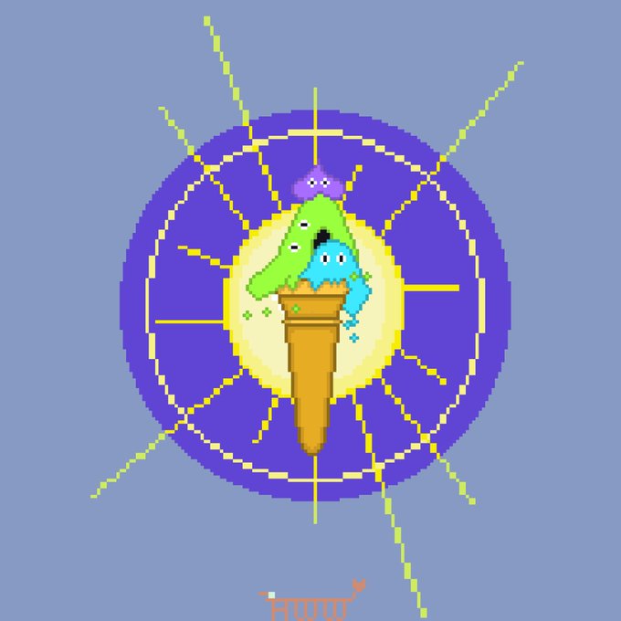 0 2 #dotpict #pixelart #ドット絵 想像神シリーズ 「スライムソフト」の神様🍦💧 23/08/06 04:56