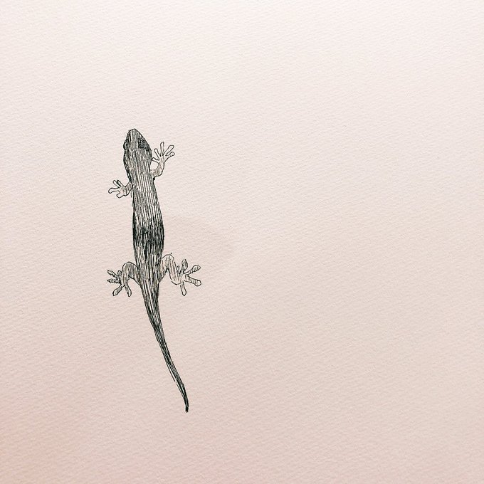 やもたんカーテンに初めて登る。 #ヤモリ #ニホンヤモリ #スケッチ #ペン画