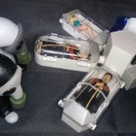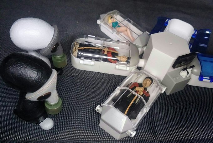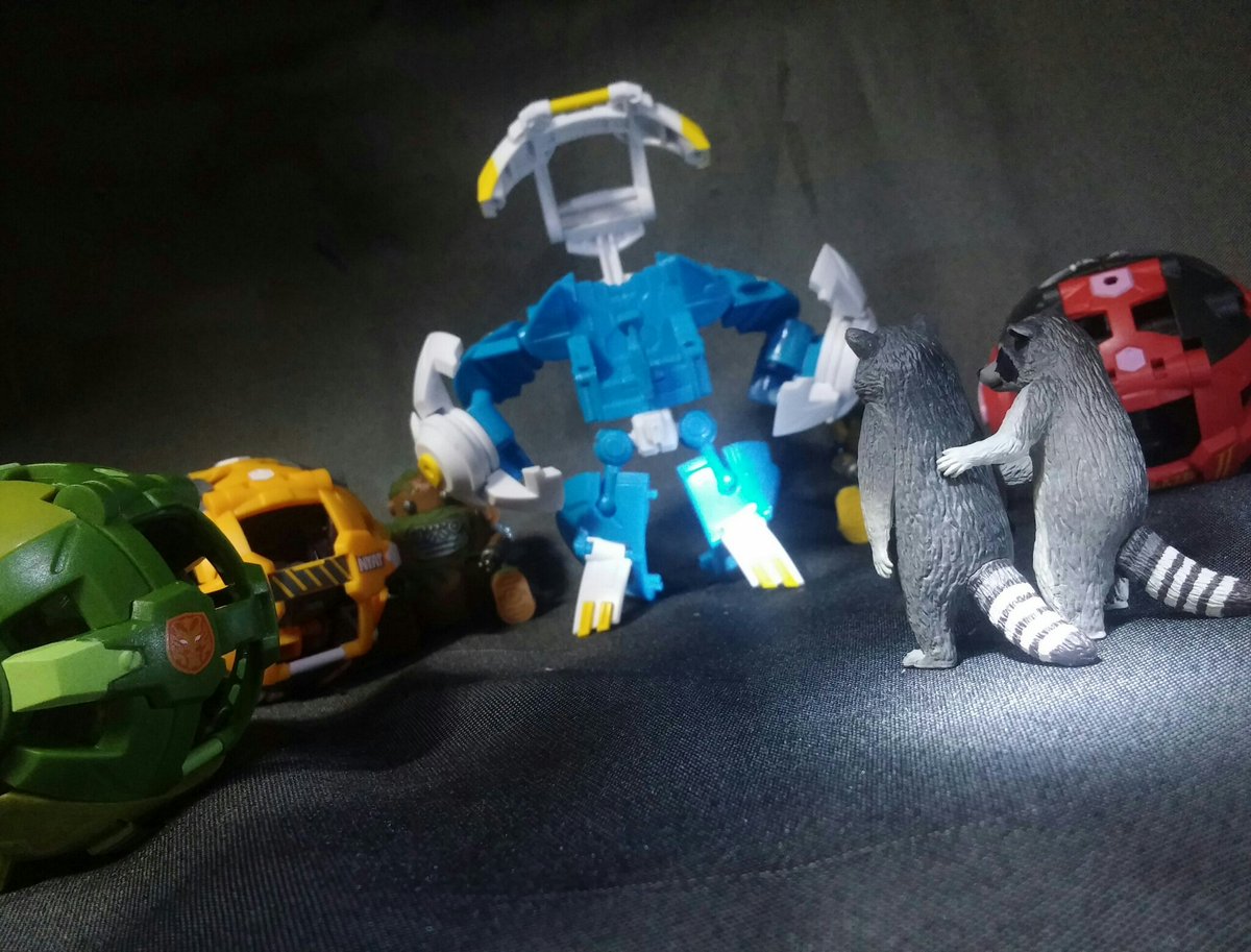 #夜のフィギュア撮影会 7/8(木)テーマ 『武器』 #楽しく玩具撮影会 『とりあえず、1枚ツイート』 やめときなよシリーズその2 「あんちゃん!こんな、武器も何も付いてないメカに乗って戦おうって言うのかい?!」 「や、やるしかないだろ...」 「やめときなよ!」 #中に人が入ってるアライグマ