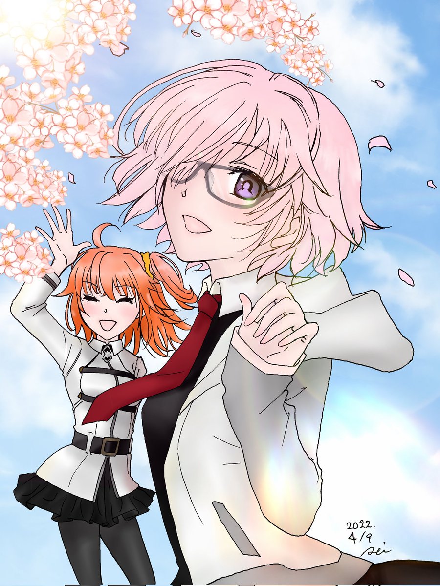 #FGO #ファンアート #マシュぐだ子 #アイビスペイント 線がブレブレですなぁ… 素材様々、有り難い事です。 乗算減算加算…覆い焼きオーバーレイ…頭が沸騰しそう…