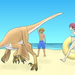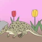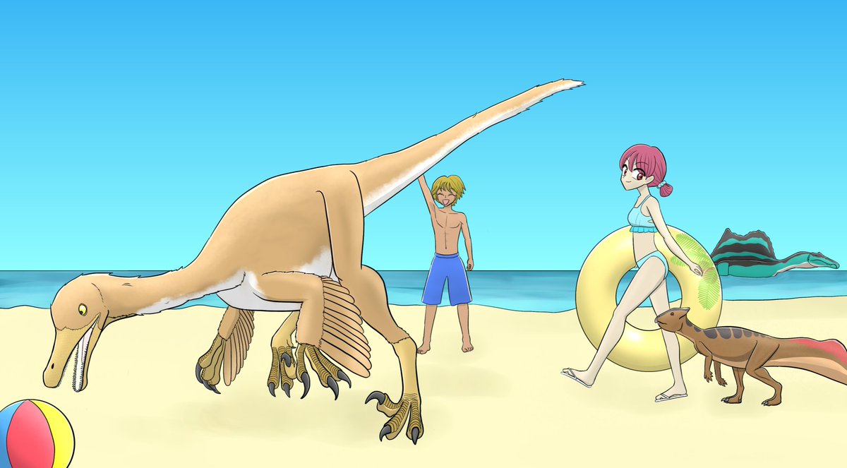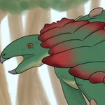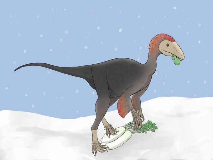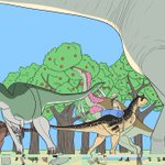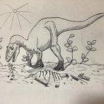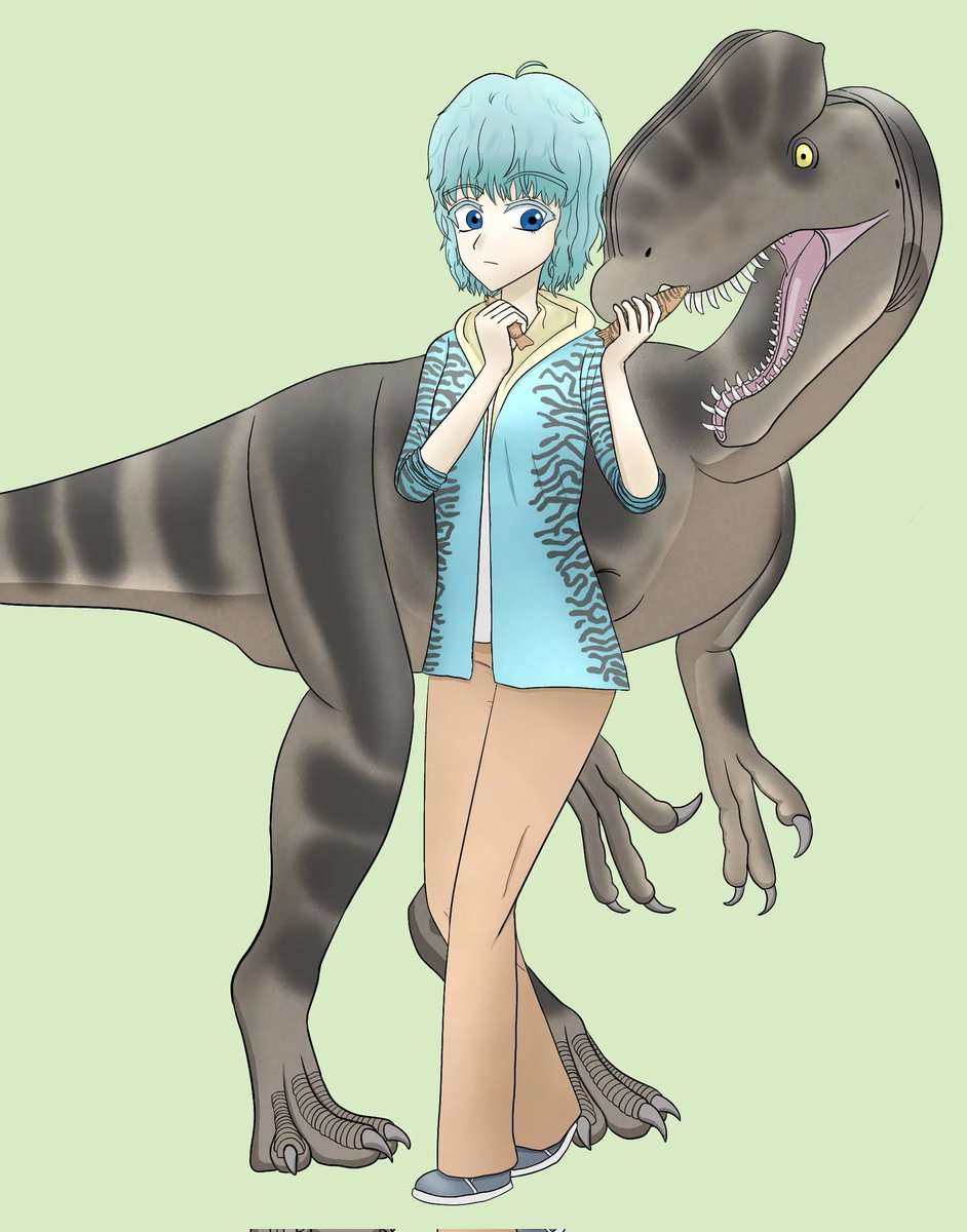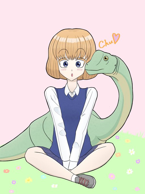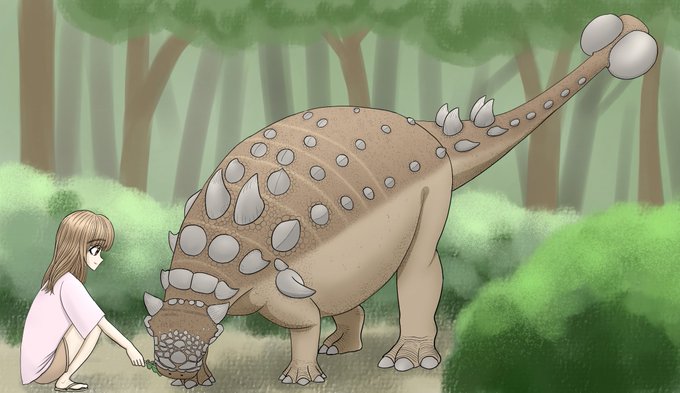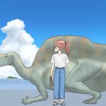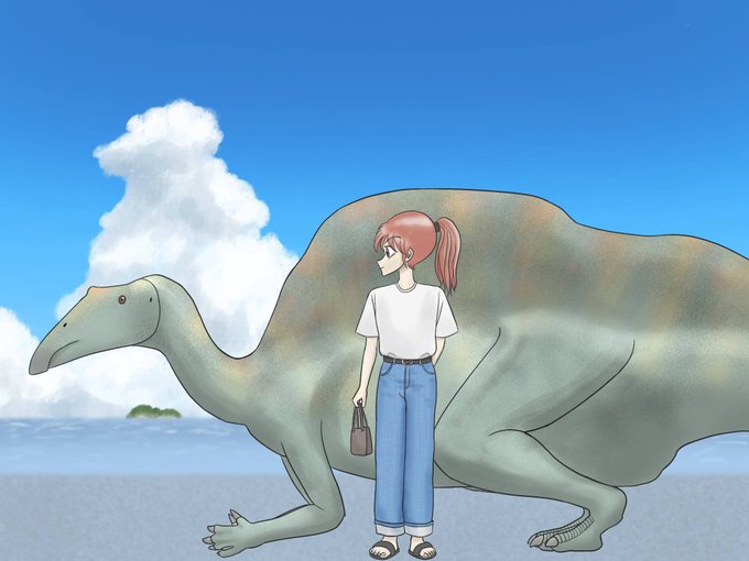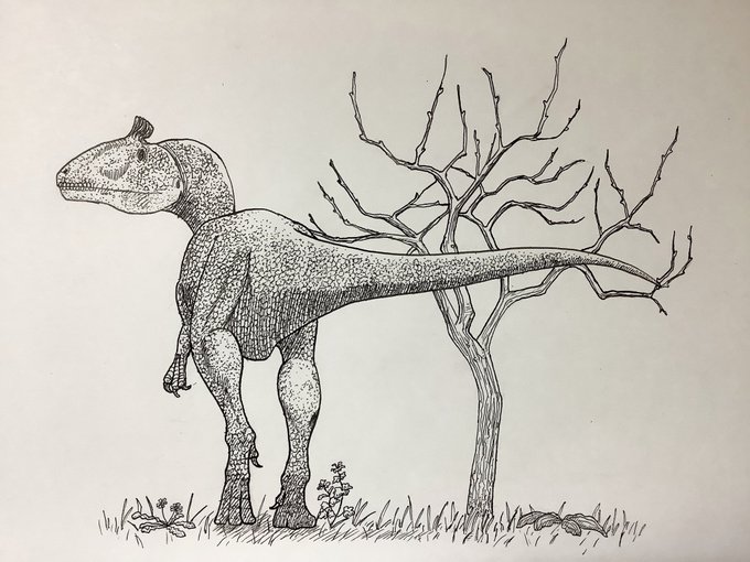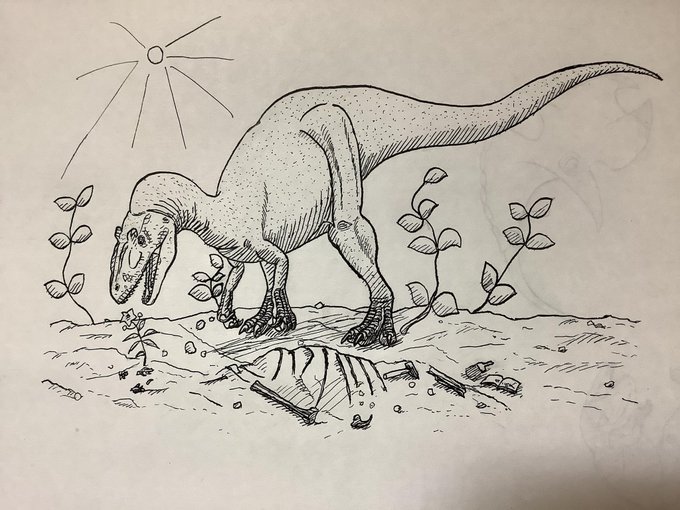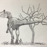 ネオベナトルという恐竜のつもり! 彼女(に限らず大型肉食恐竜)の口先の骨には神経が通っていた穴がたくさん開いていたそうで、 口先の感覚は敏感だったとか! 彼らにとってキスはどのような味だったんでしょうね〜 #イラスト #恐竜 #Neovenator のつもり!