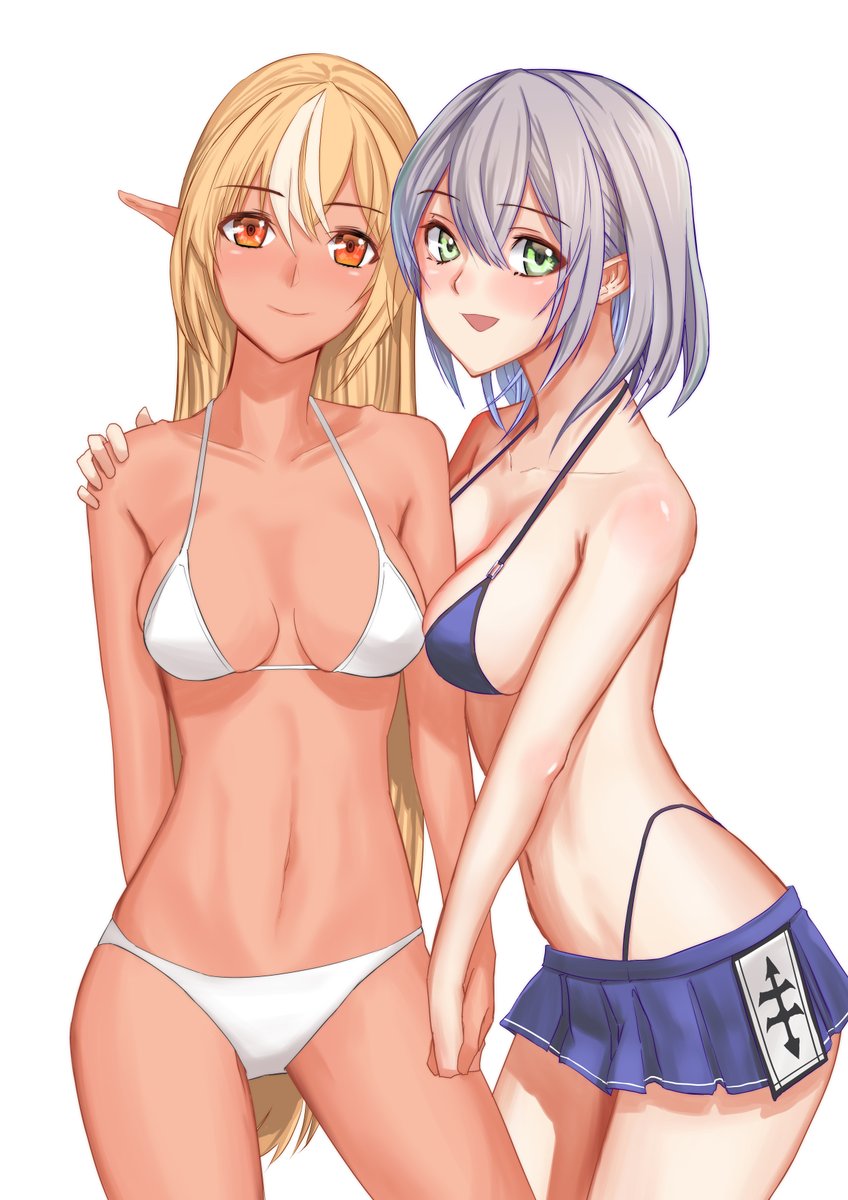 1ヶ月ほどの←ビフォー アフター→ #夏が終わりそうだし今年描いた水着絵を貼ろう #しらぬえ #ノエラート