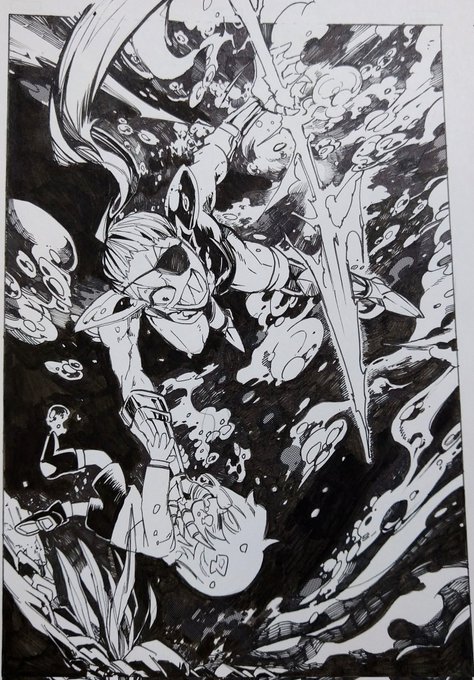 24 184 アクリル画材で描いてみたけど細かい描き込み(塗り込み?)が難しくて苦戦。 久しぶりのガスフリ🥰今年もっと描いていきたい💞 23/02/19 17:56