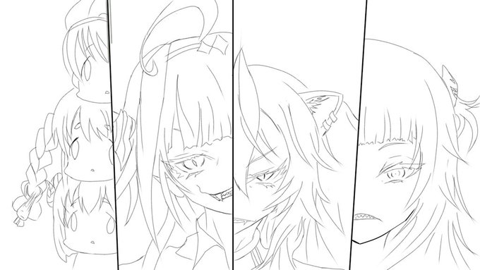 #ホロライブ #みかじ絵 #ししらーと #gawrt #その他非常食 「お腹すいたね…」で全てを悟る アヒルと兎と羊。