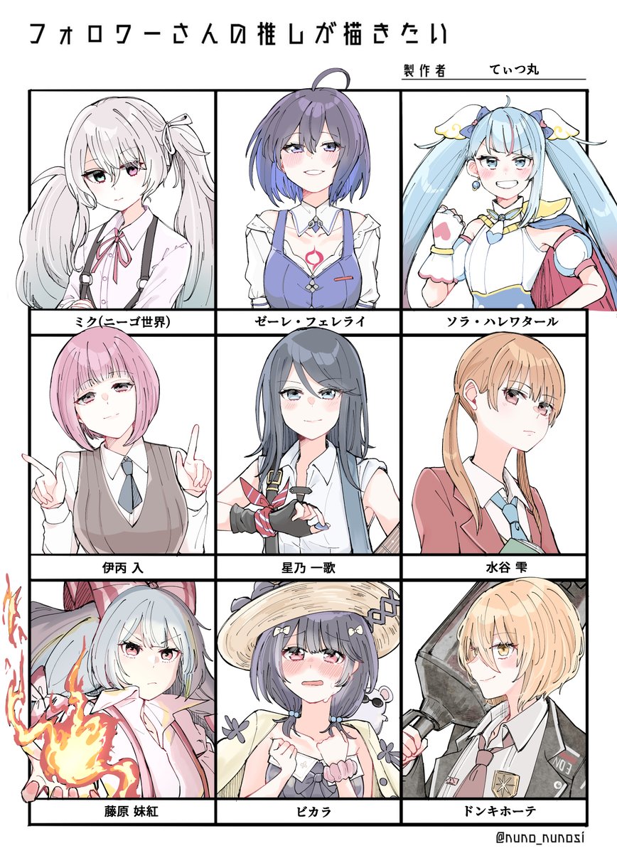 20 104 フォロワのリクエストと描け麻雀の負債合わせて9人描けた~~~~~!!!!!!! リクエストは普段描かないキャラを選定したよ! リクエスト送ってくれた人ありがとう、LOVE🥰 23/07/30 01:18