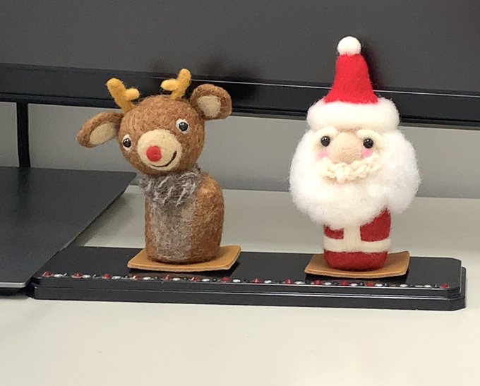 0 1 とか言いながら⁉︎昨日までは障害者支援センターで。本日からオフィスにて、作例を飾っていたりしる(´>∀<`)ゝ #クリスマスオブジェ #羊毛フェルト 久しぶりのお役目٩(๑❛ᴗ❛๑)۶ 21/12/23 13:01