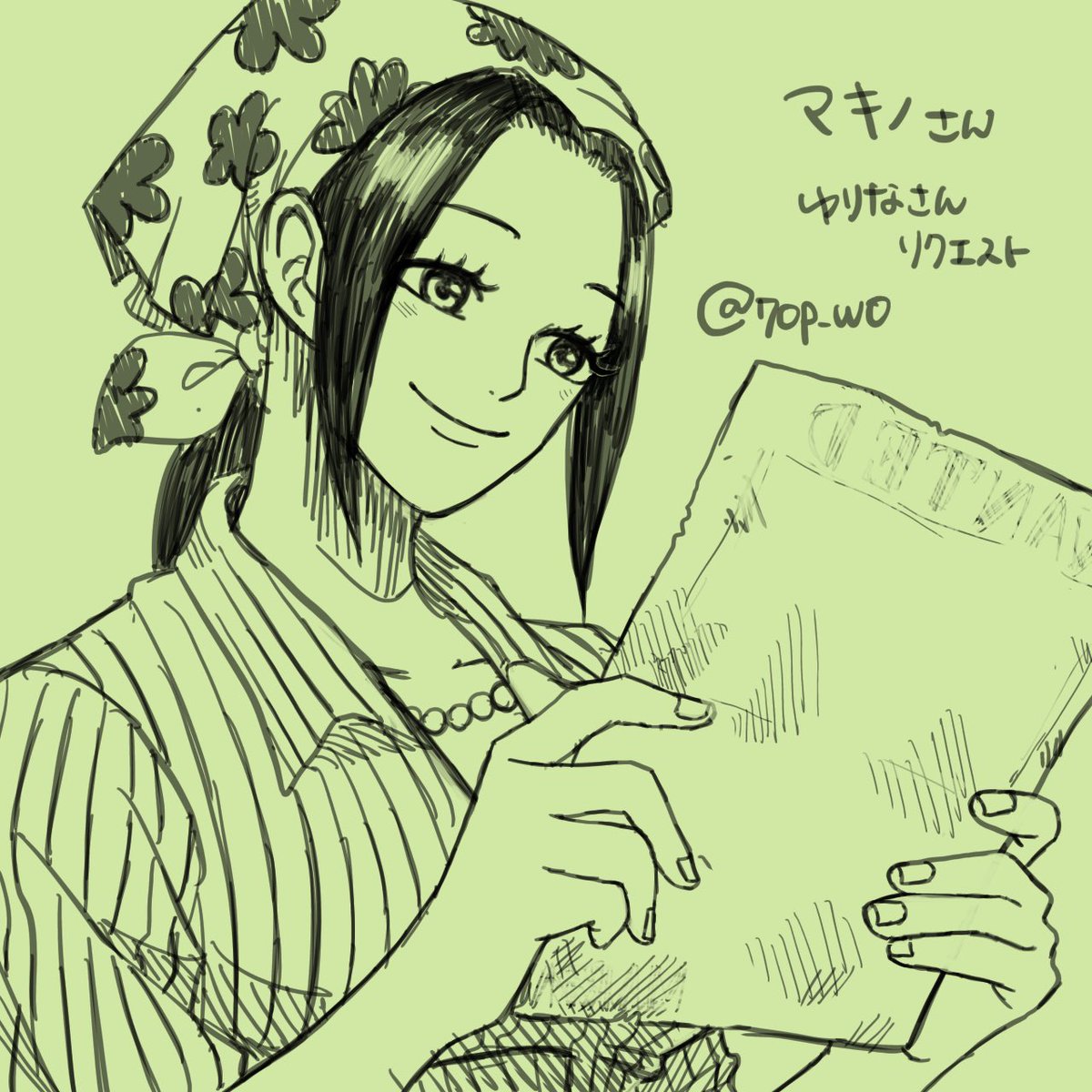 OPのレディ描きたい企画 リクエストいただいたマキノさんを描きました〜! 遅くなってしまい申し訳ありません🙇♀️ 彼女の見ている手配書は一体誰のものなのでしょう…🤔😉 リクエストありがとうございました〜✨✨