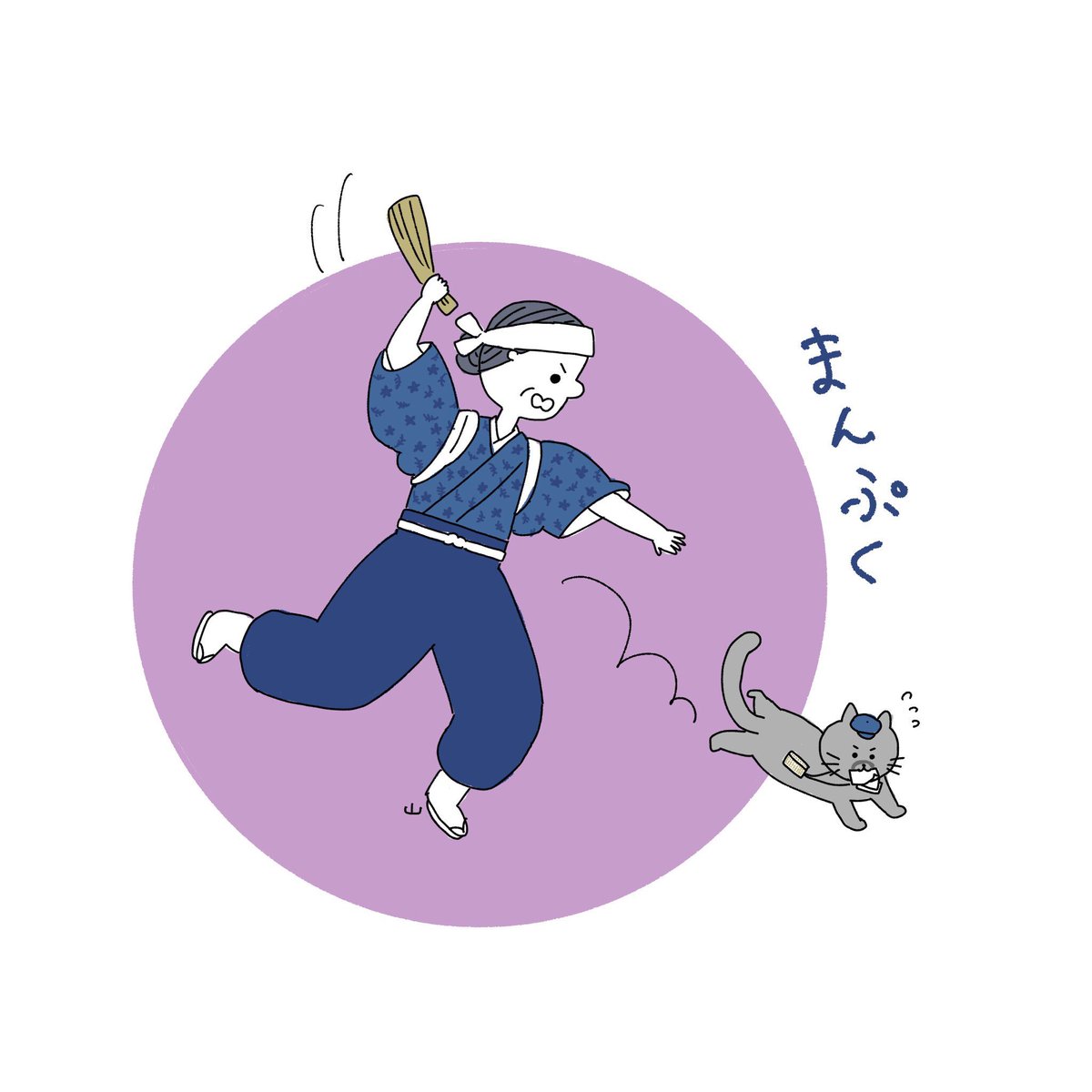 今日は着物の日ということで、ぷく絵は着物姿の鈴さん。そして、泥棒猫世良さん。 #まんぷく #まんぷく絵 #ぷく絵