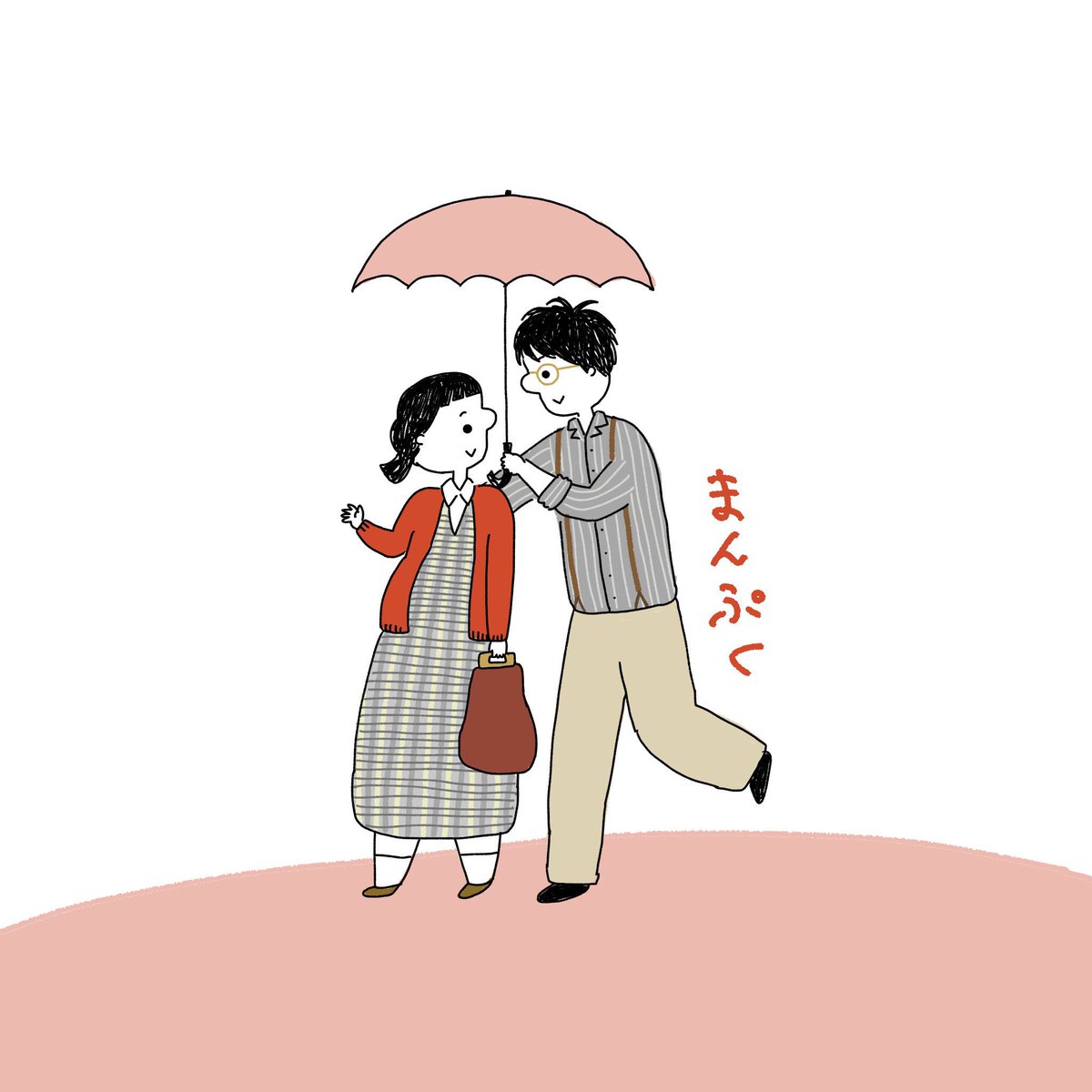 今日のぷく絵は相合傘の萬平さんと福ちゃん。マタニティワンピースもかわいい💕 #まんぷく #まんぷく絵 #ぷく絵