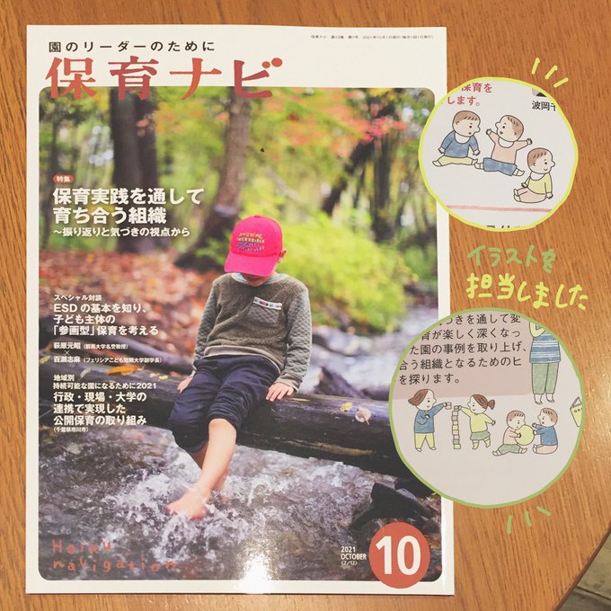 0 4 『保育ナビ』2021・10月号(フレーベル館)のイラストを描かせていただきました! 本屋さんなどで見かけましたら手に取って見てください。 どうぞよろしくお願いいたします! 21/09/01 10:14