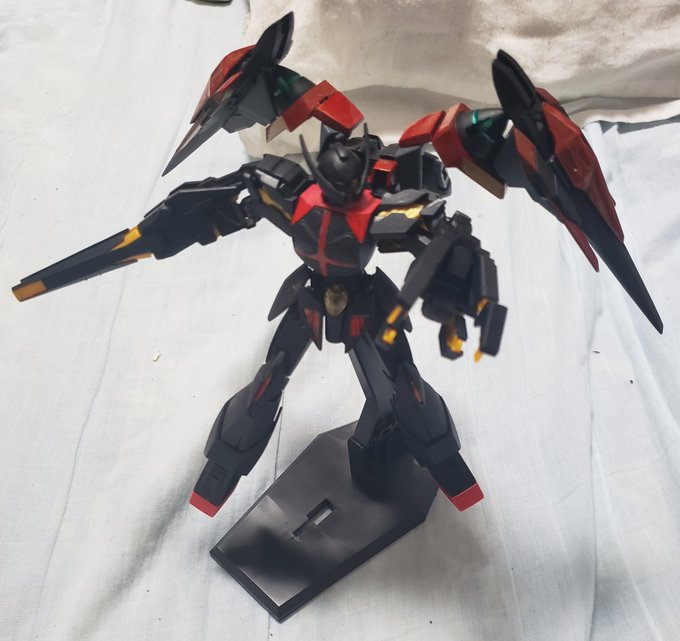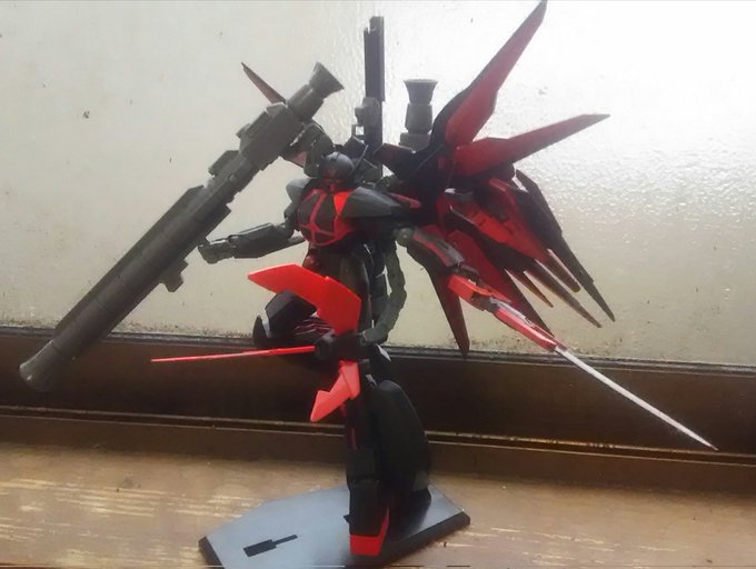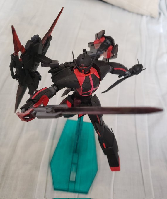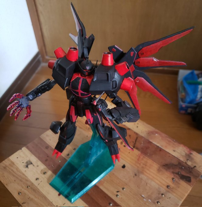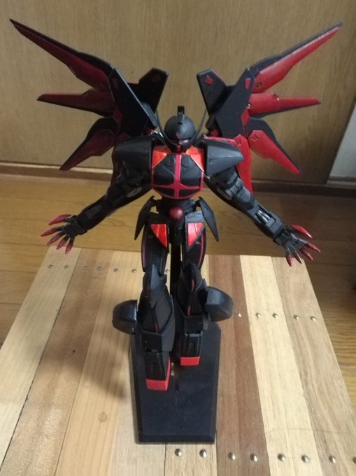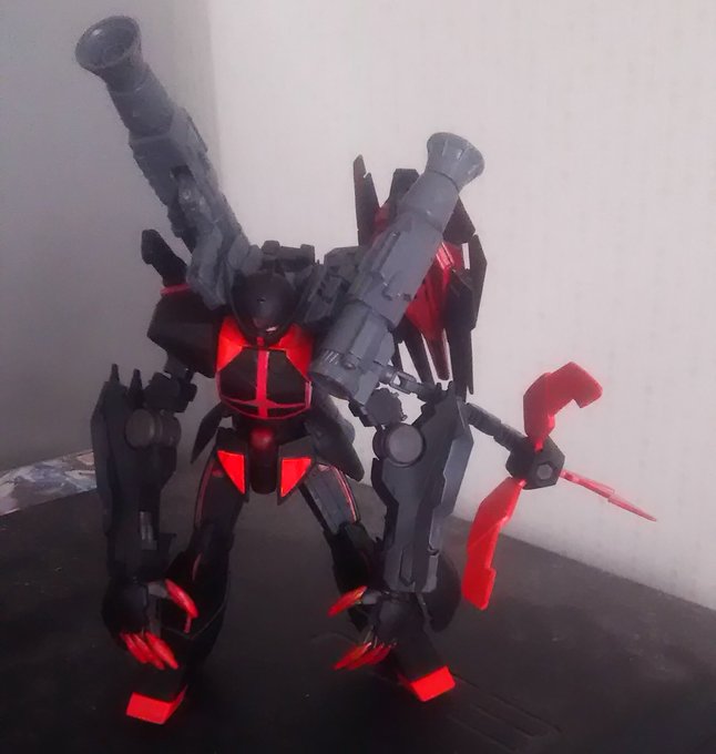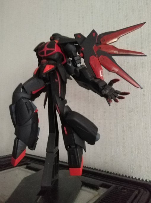 #リンプラに見せてね どうしてもバックパックを盛り過ぎるせいで前傾姿勢にならないと自立が厳しくなるんだけど、その姿勢がむしろ悪魔的な威圧感になってて気に入ってます✨ #ガンプラ #ガンプラの画像貼るとRTされると聞いて